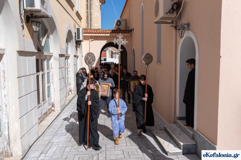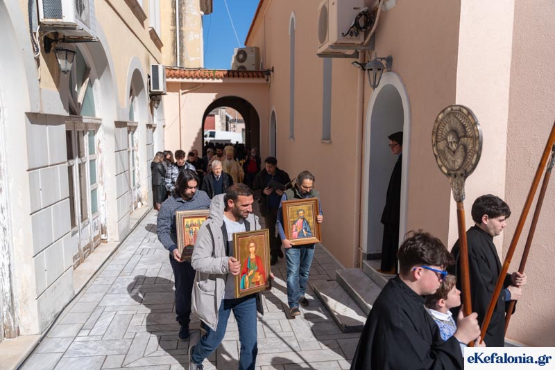 Επίκεντρο του εορτασμού στην τοπική εκκλησία ήταν ο Μητροπολιτικός Ιερός Ναός της Ευαγγελιστρίας στο Αργοστόλι χοροστατούντος του Μητροπολίτη κ. Δημητρίου. Κατά το κήρυγμά του ο Σεβασμιώτατος ανέφερε, ότι σήμερα η Εκκλησία μας λαμπροφορεί, πανηγυρίζει και εορτάζει τον θρίαμβο της αναστηλώσεως των ιερών Εικόνων και προβάλλει τη μεγάλη σημασία που έχει να αποδεχόμαστε και να εκφράζουμε το ορθόδοξο δόγμα, δηλαδή την αναλλοίωτη αλήθεια της πίστεώς μας, όπως αυτήν διασώθηκε μέσα στο ιερό Ευαγγέλιο, στους όρους και τις αποφάσεις των Οικουμενικών Συνόδων.