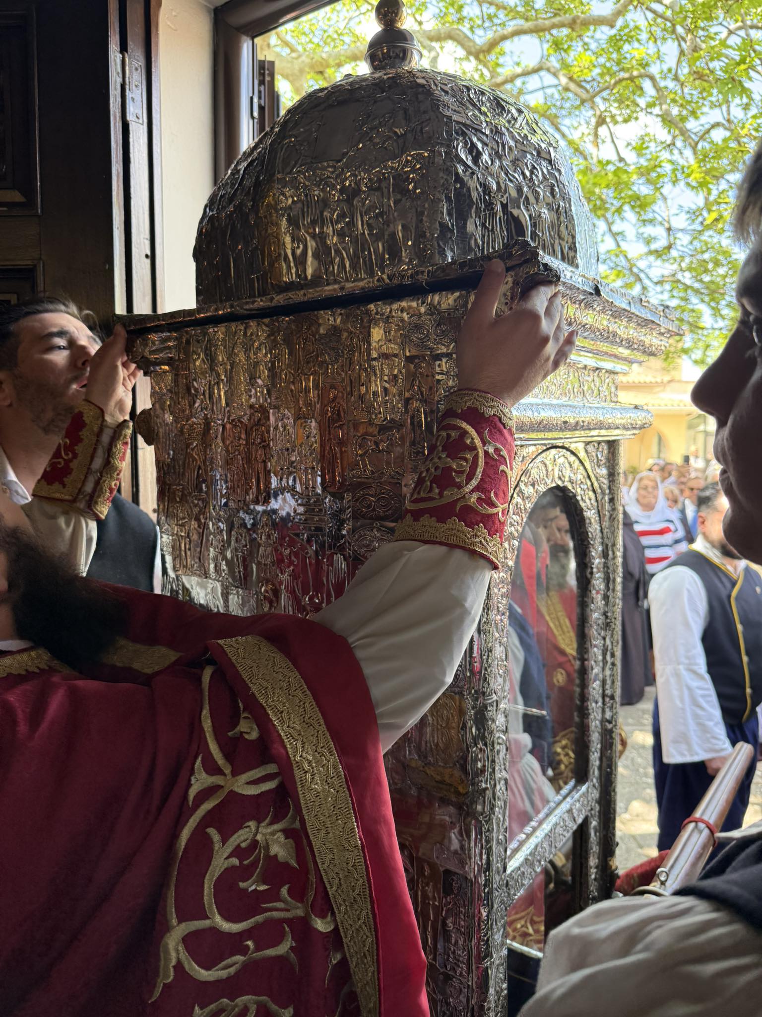 Μετά το πέρας της Θείας Λειτουργίας ακολούθησε Ιερά Λιτάνευση του Σκηνώματος του Αγίου στο Πλάτανο αλλά και τα Αλώνια και τέλος εναποτέθηκε και πάλι στο Καθολικό μέσα στην Λάρνακα. Το Σκήνωμα του Αγίου κρατούσαν μέλη του Πολιτιστικού Συλλόγου Ομαλών “Ο Βάλσαμος” φορώντας παραδοσιακές φορεσιές.