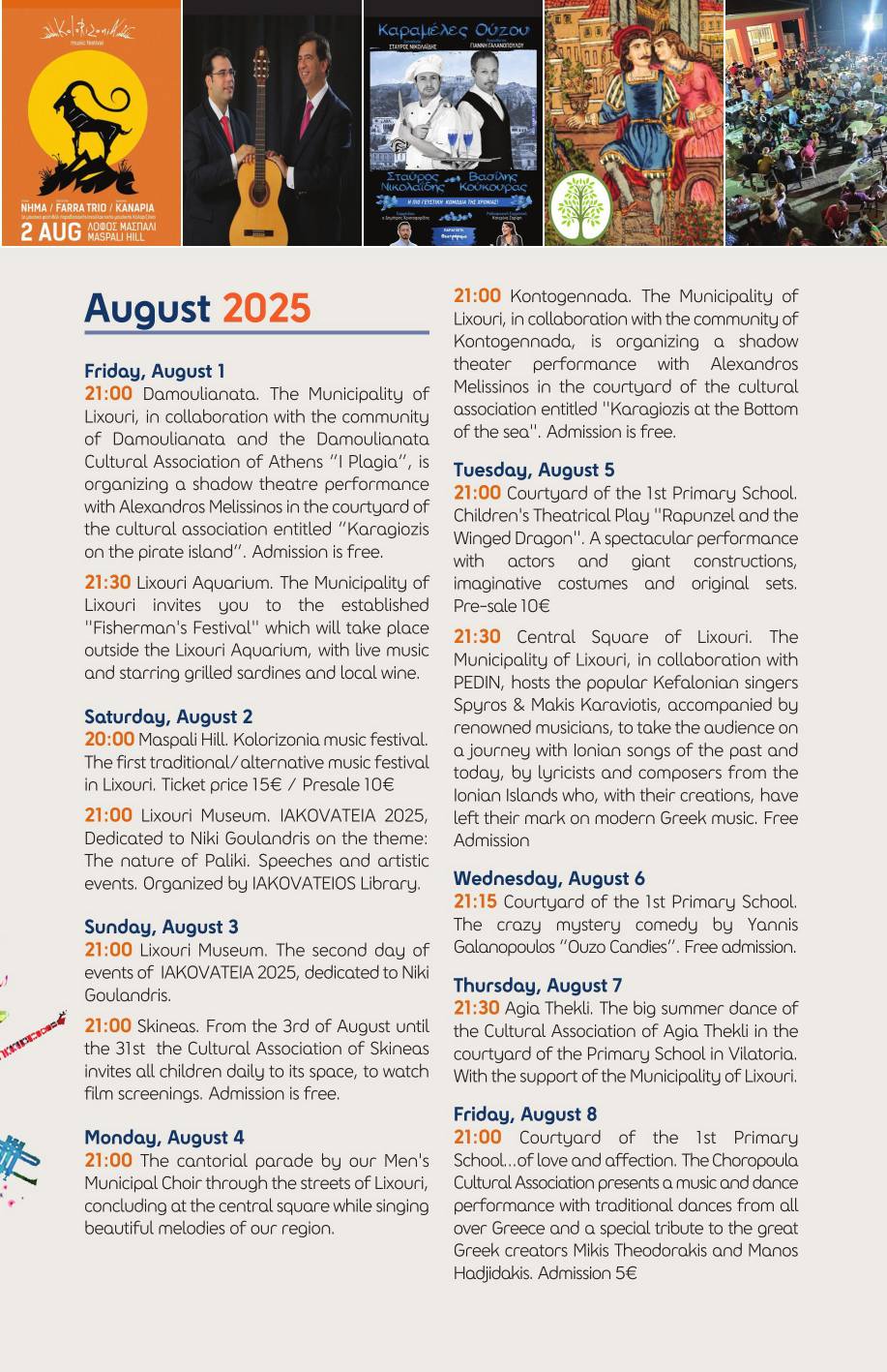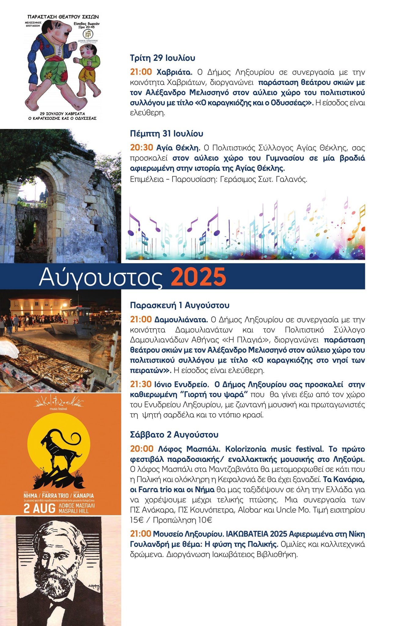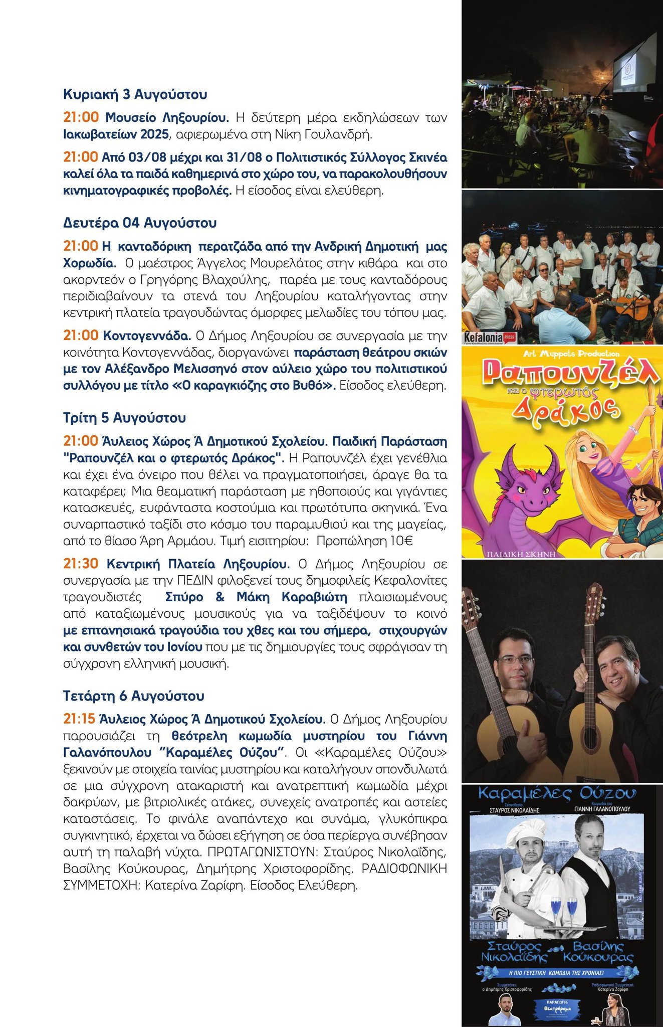 Δείτε το πλήρες πρόγραμμα και ελάτε να ζήσουμε μαζί ένα αξέχαστο καλοκαίρι γεμάτο πολιτισμό στο Ληξούρι!