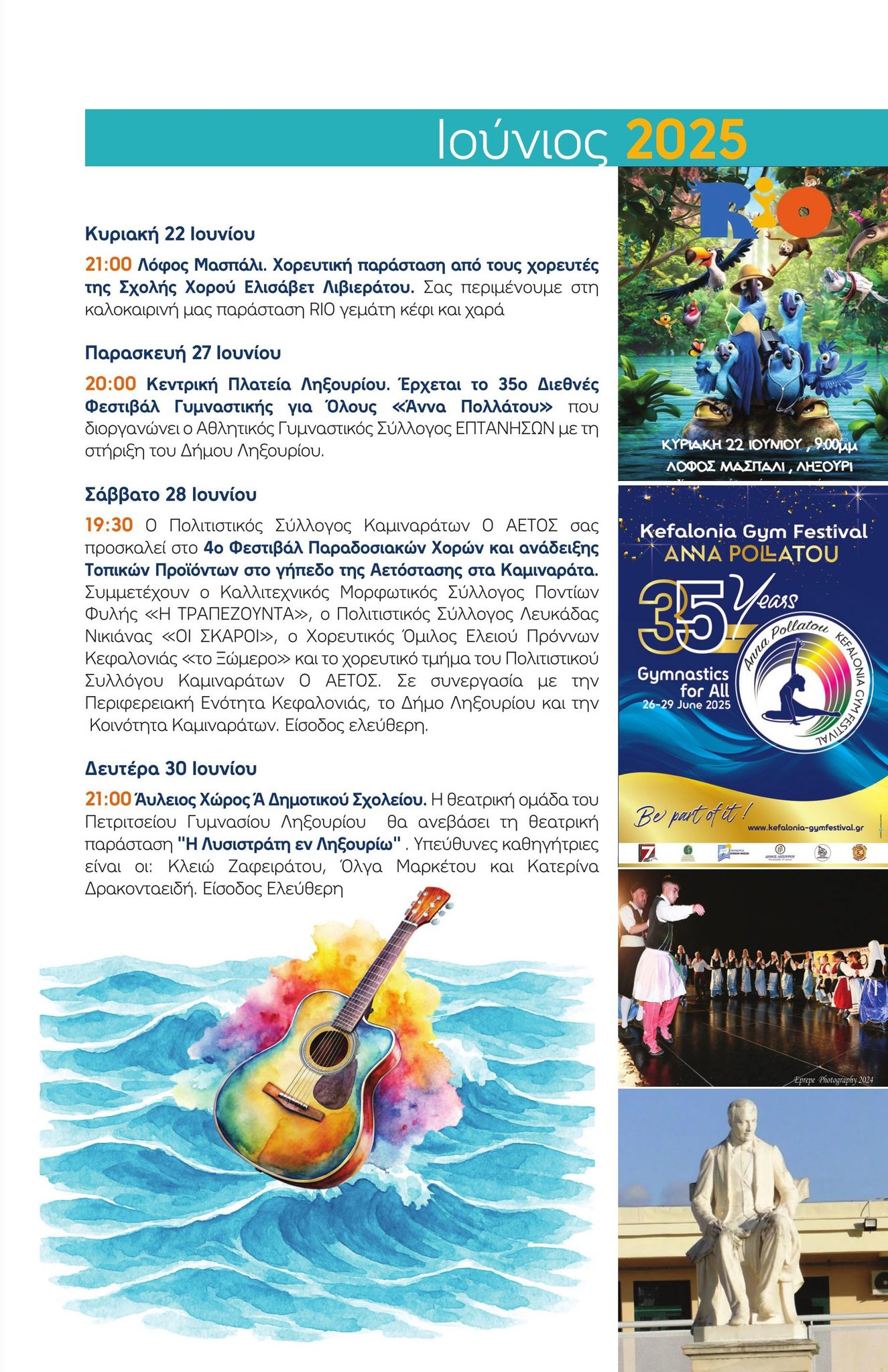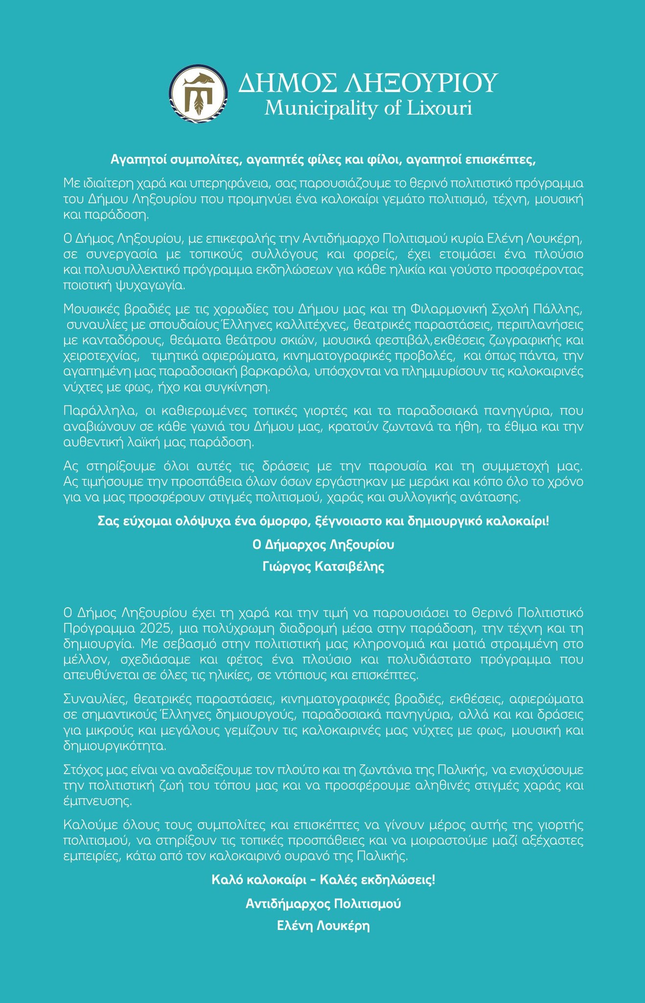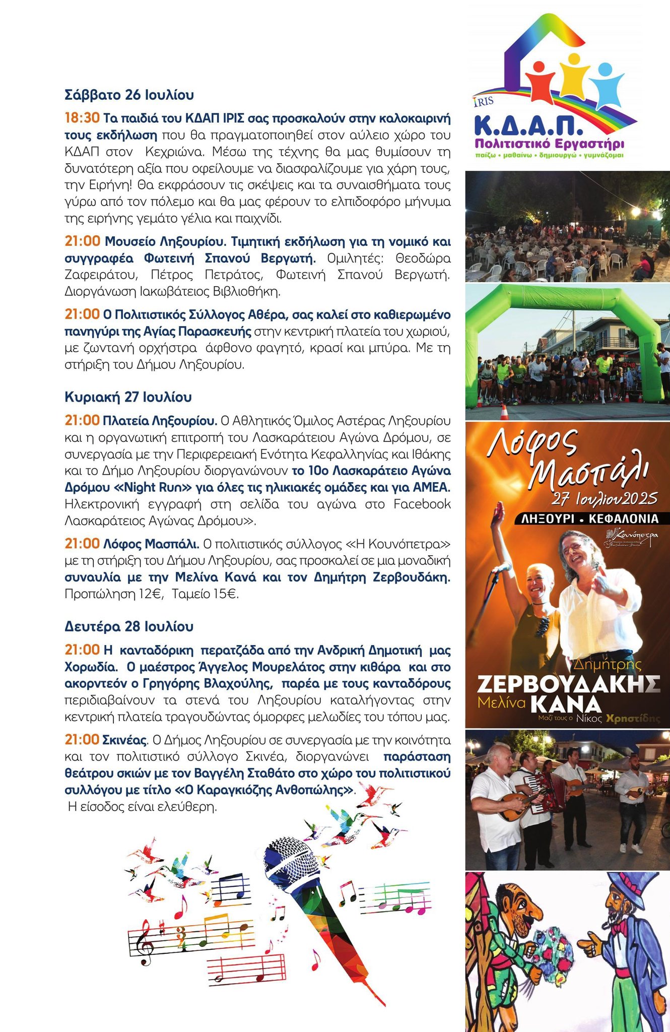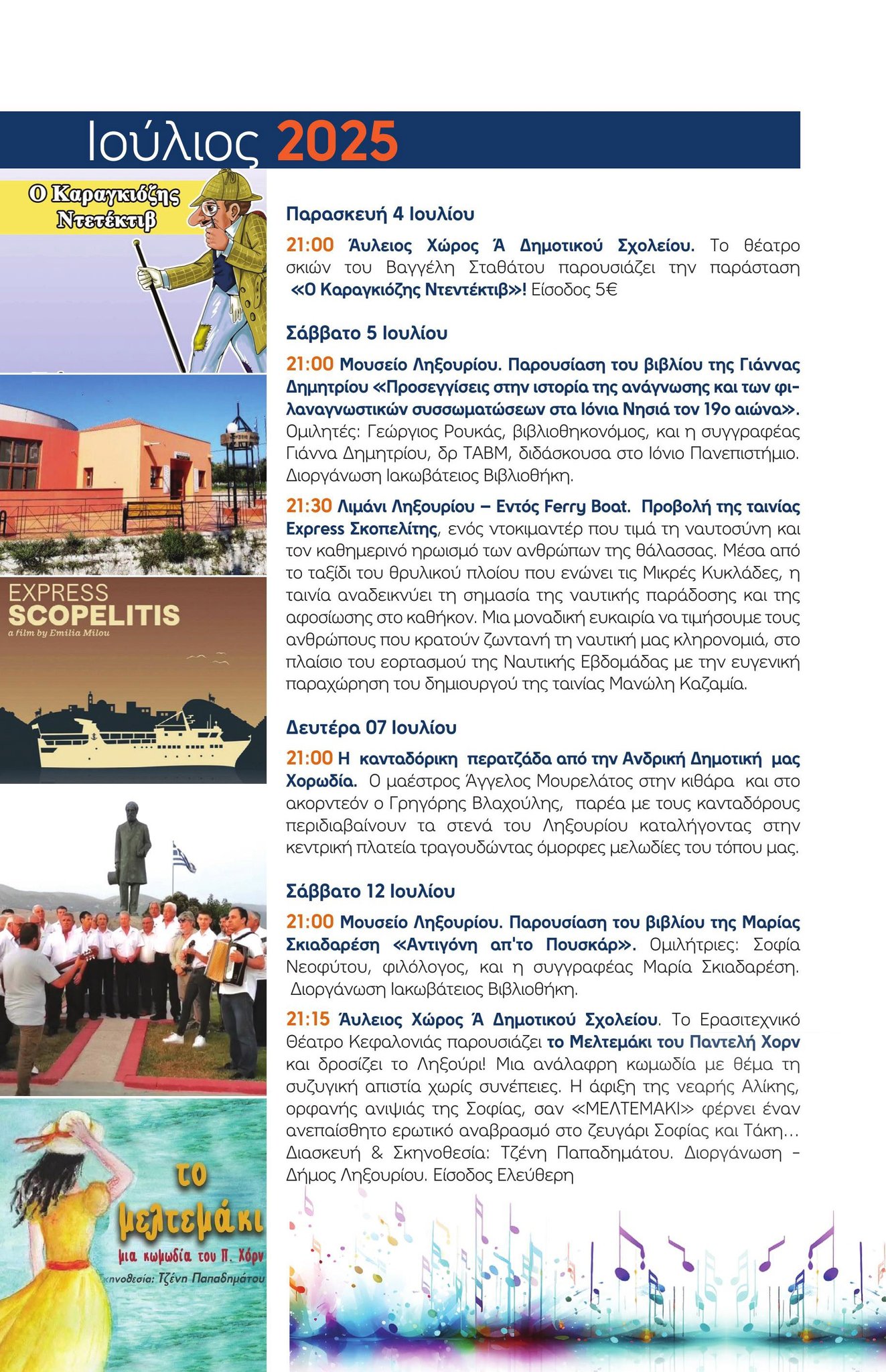 Δείτε το πλήρες πρόγραμμα και ελάτε να ζήσουμε μαζί ένα αξέχαστο καλοκαίρι γεμάτο πολιτισμό στο Ληξούρι!