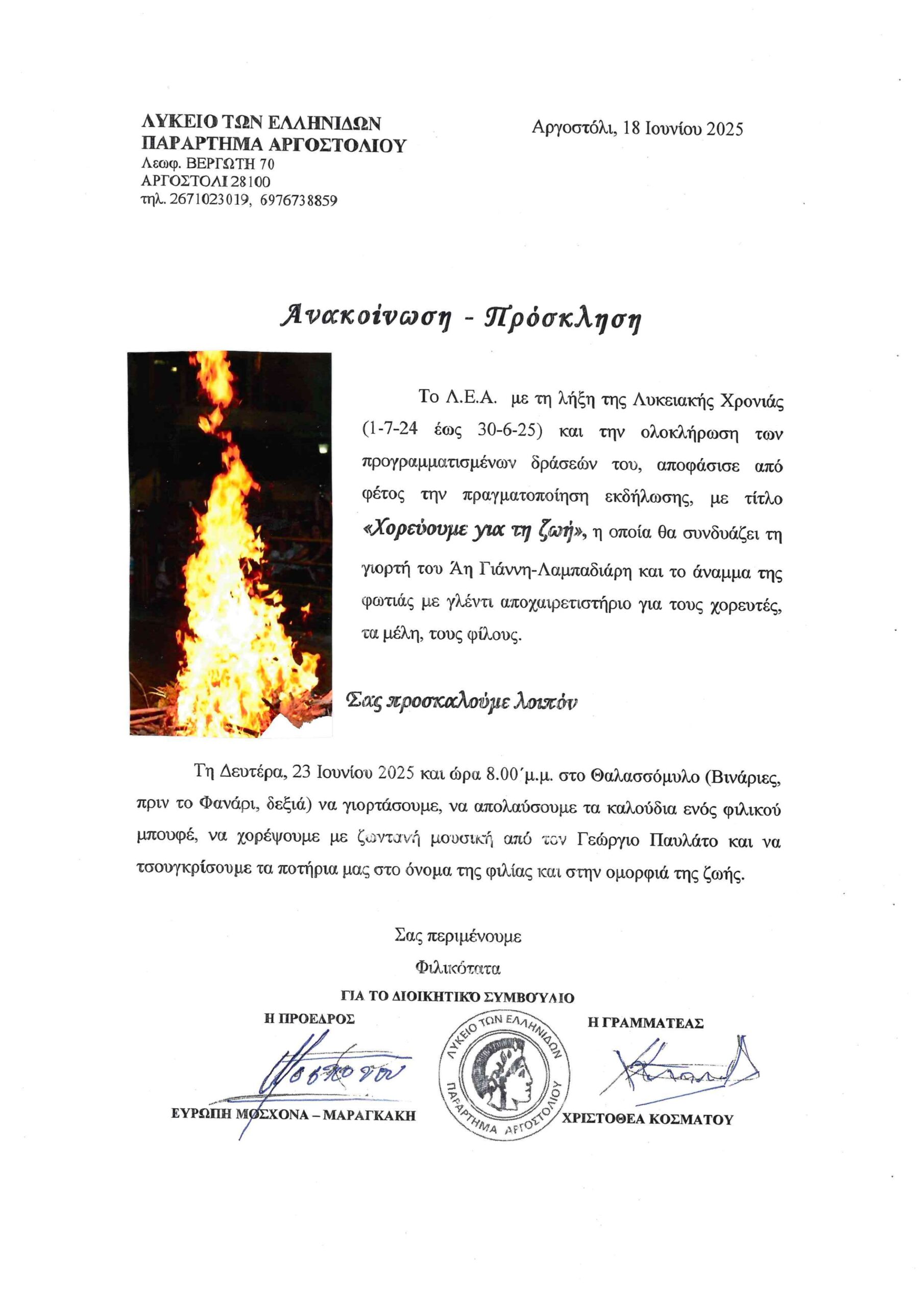 Λύκειο Ελληνίδων: Μουσικοχορευτική εκδήλωση για τον Άη Γιάννη τον Λαμπαδιάρη