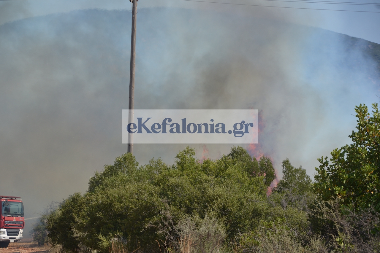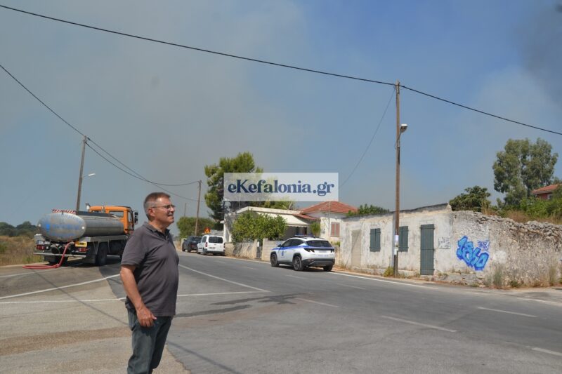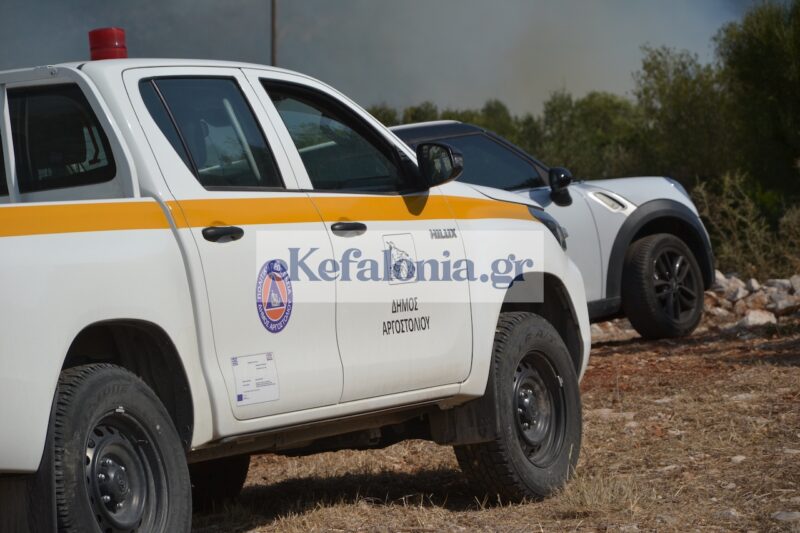 Στην προσπάθεια κατάσβεσης συνδράμουν η Περιφέρεια Ιονίων Νήσων και ο Δήμος Αργοστολίου, με υδροφόρες και βυτιοφόρα οχήματα.