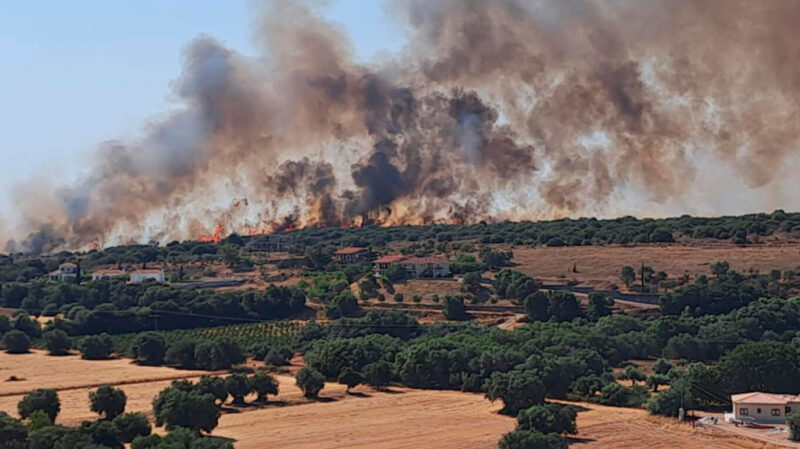 Σύμφωνα με τις τοπικές Αρχές, η φωτιά εκδηλώθηκε μόλις δέκα μέτρα από κατοικίες, με ό,τι αυτό συνεπάγεται.