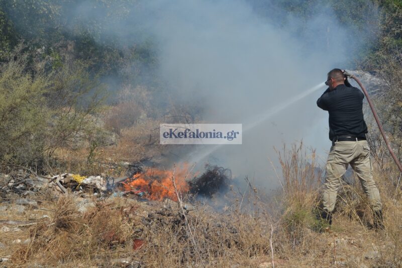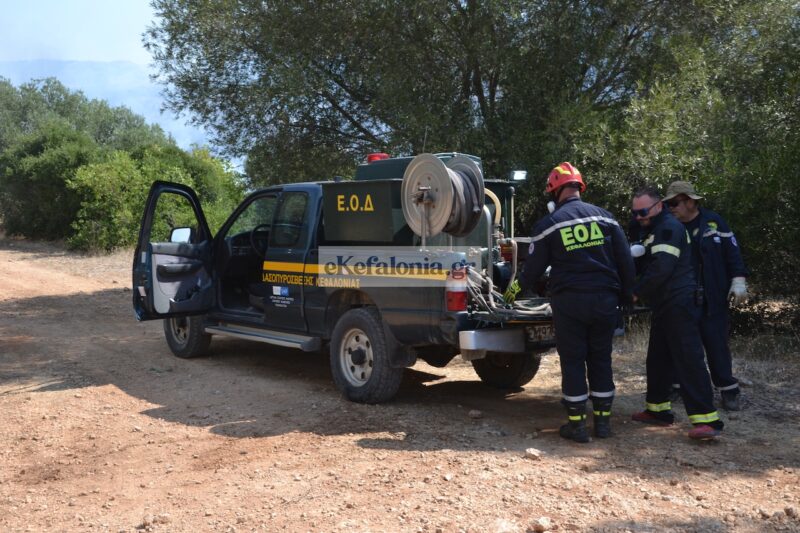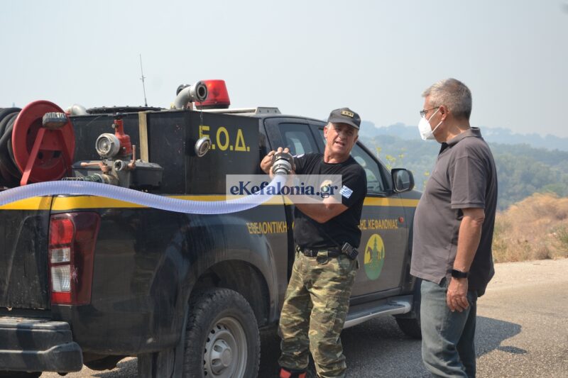 Στην προσπάθεια κατάσβεσης συνδράμουν η Περιφέρεια Ιονίων Νήσων και ο Δήμος Αργοστολίου, με υδροφόρες και βυτιοφόρα οχήματα.