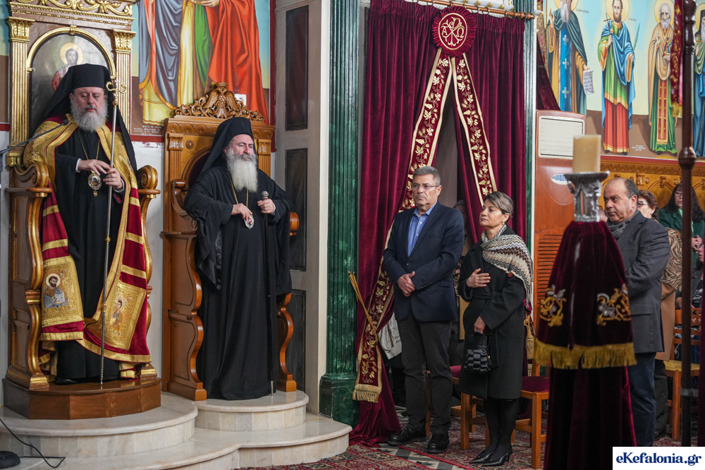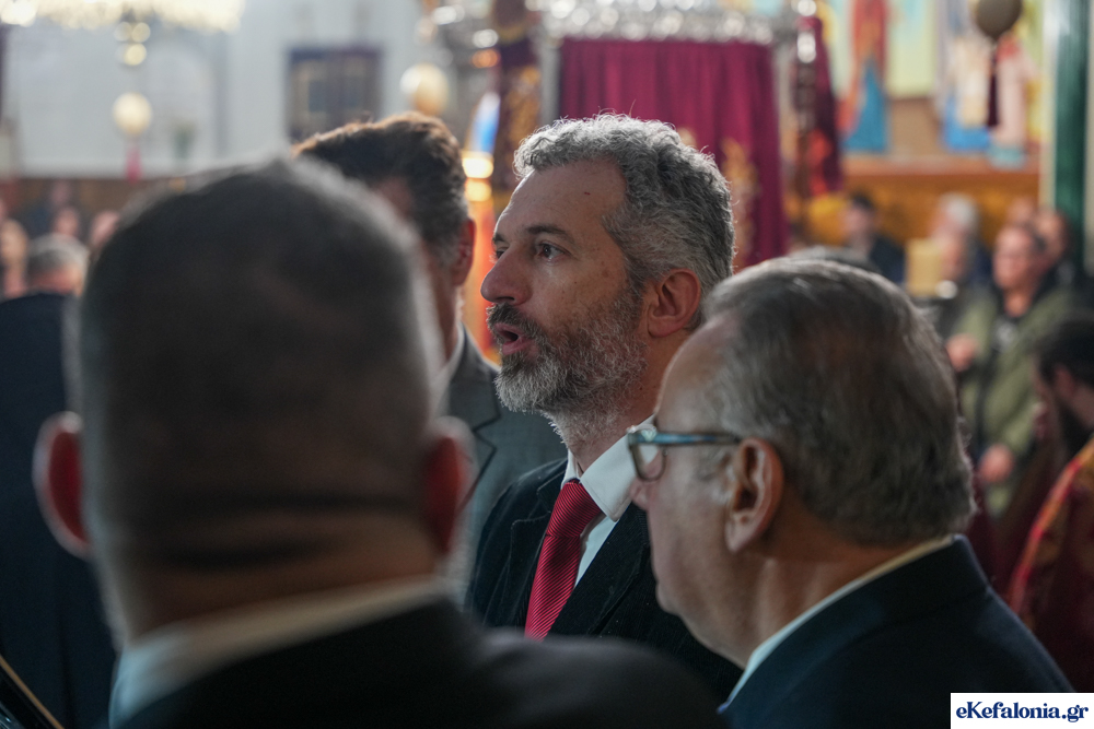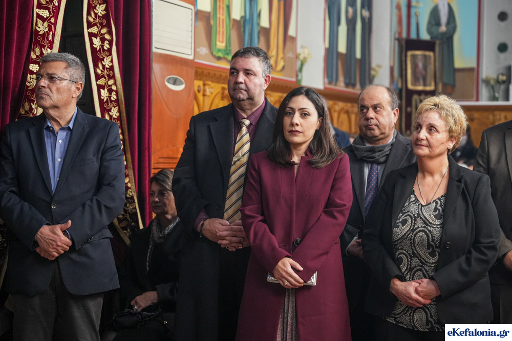 Την ιερά ακολουθία τίμησαν με την παρουσία τους εκπρόσωποι των πολιτικών και αυτοδιοικητικών αρχών του τόπου. Μεταξύ αυτών παρέστησαν ο Βουλευτής Κεφαλληνίας – Ιθάκης κ. Παναγής Καππάτος, ο Αντιπεριφερειάρχης Κεφαλληνίας – Ιθάκης κ. Σωτήριος Κουρής, ο Πρόεδρος της Αγροδιατροφικής Σύμπραξης Ιονίων Νήσων κ. Νεκτάριος Αραβαντινός-Σιμωνέτος, ο Δήμαρχος Ληξουρίου κ. Γεώργιος Κατσιβέλης, ο Αντιδήμαρχος κ. Δημήτριος Μαρκέτος, καθώς και η εντεταλμένη σύμβουλος κα Αδαμαντία Καμινάρη, μεταξύ άλλων.