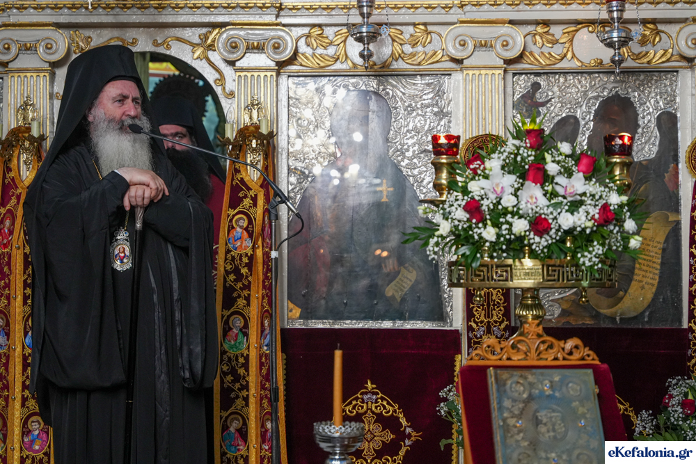 Την Ιερά Πανήγυρη λάμπρυναν με την σεπτή παρουσία τους ο Θεοφιλέστατος Επίσκοπος Ταλαντίου κ.κ. Θεολόγος και ο Σεβασμιώτατος Μητροπολίτης Κεφαλληνίας κ.κ. Δημήτριος, οι οποίοι προεξήρχαν της ιεράς ακολουθίας.