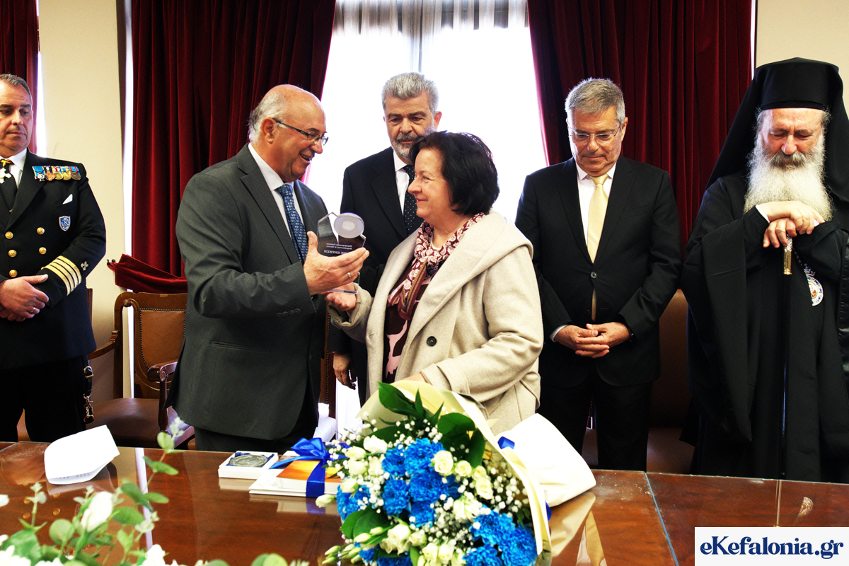 Ο κ. Κουρής βράβευσε τον Κεφαλλονίτη Γενικό γραμματέα εμπορίου Ναπολέοντα Μαραβέγια και την τέως αναπληρώτρια προϊσταμένη του Τομέα Αποκατάστασης Σεισμοπλήκτων Κεφαλληνίας Αθανασία Κακαβά.