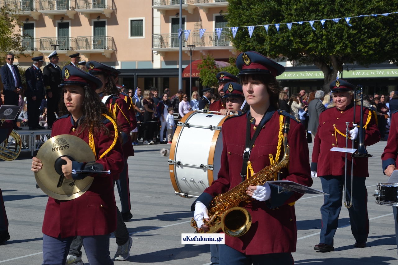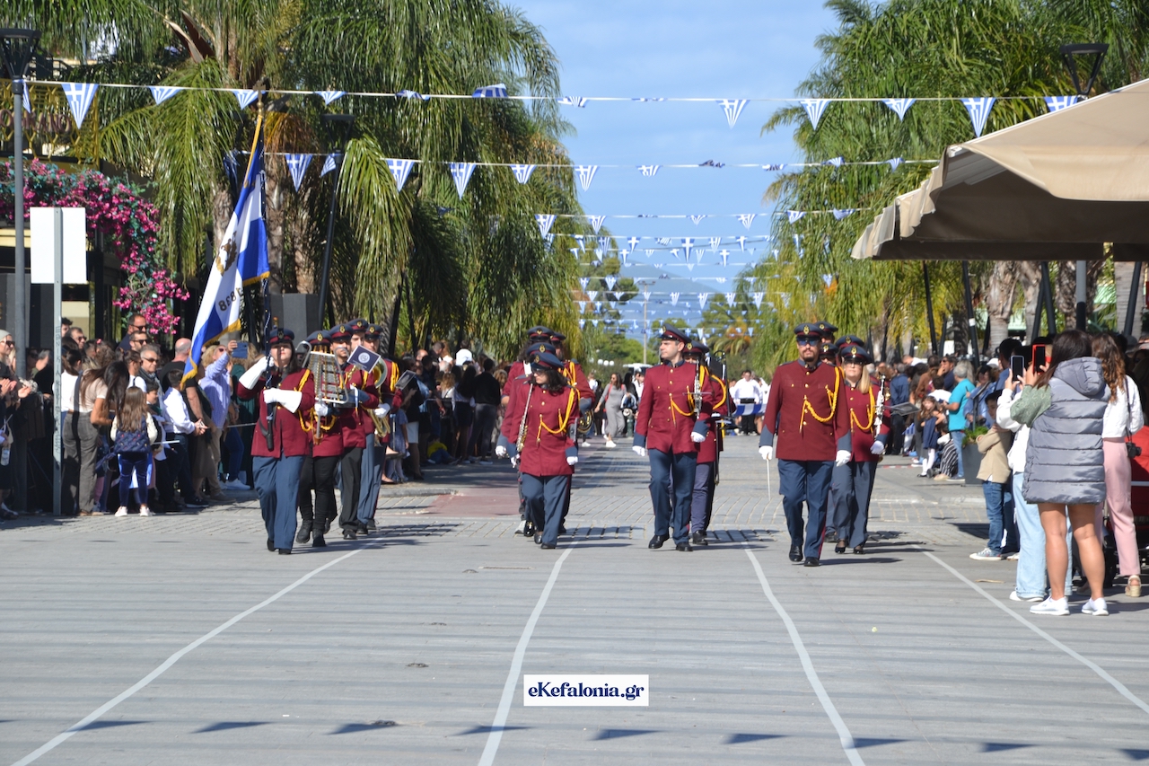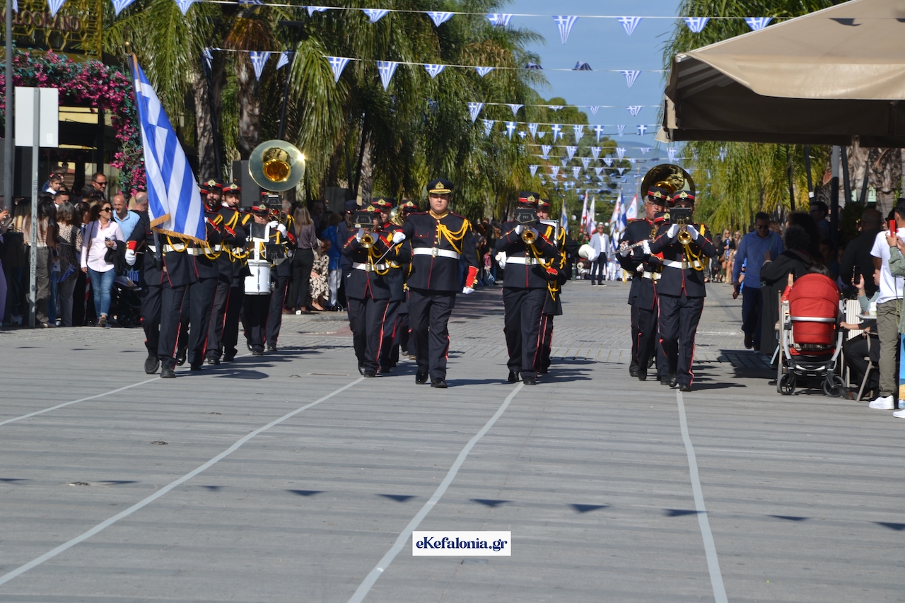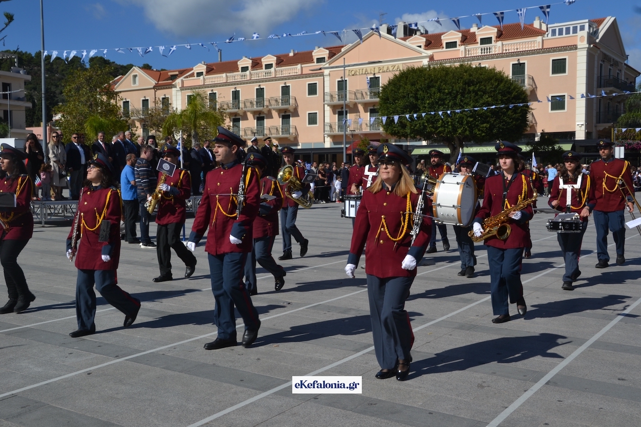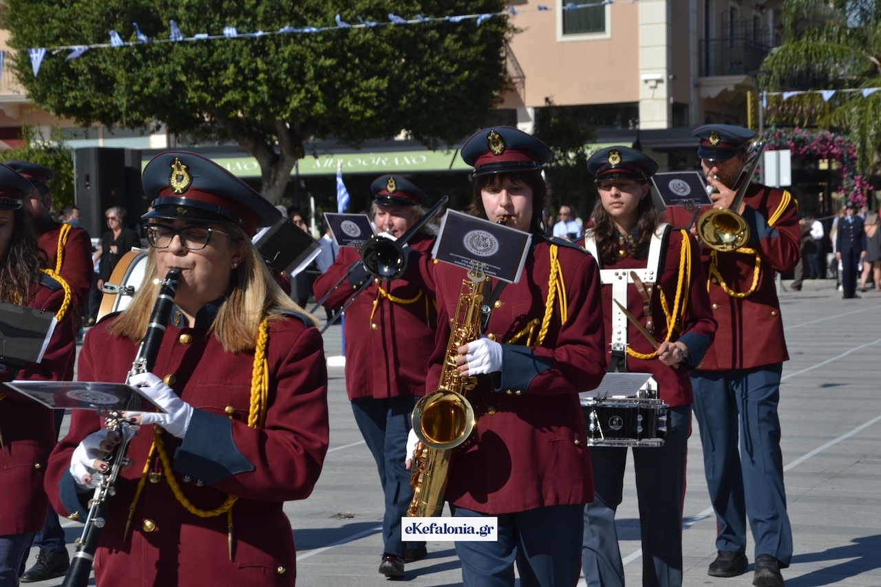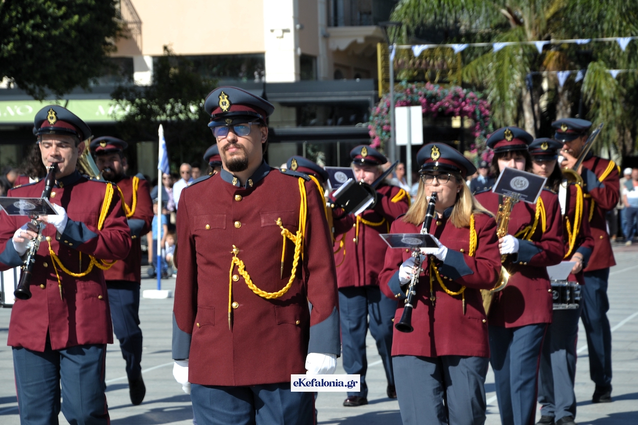 Την παρέλαση πλαισίωσαν μουσικά η Φιλαρμονική Σχολή Κεφαλληνίας και η Φιλαρμονική του Δήμου Αργοστολίου «Διονύσης Λαυράγκας».