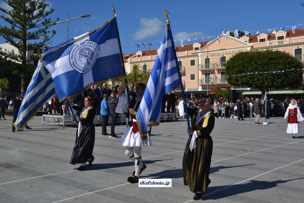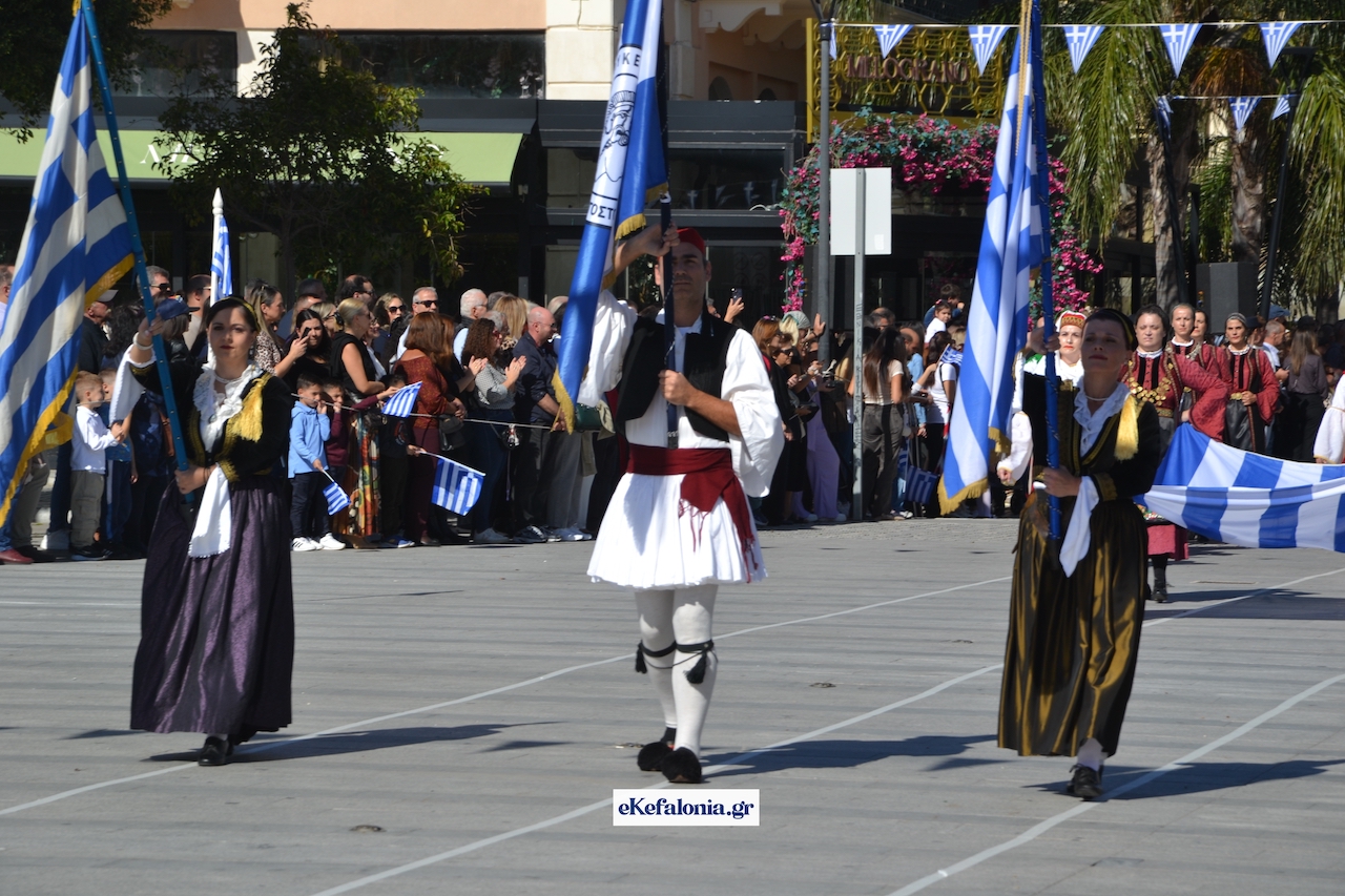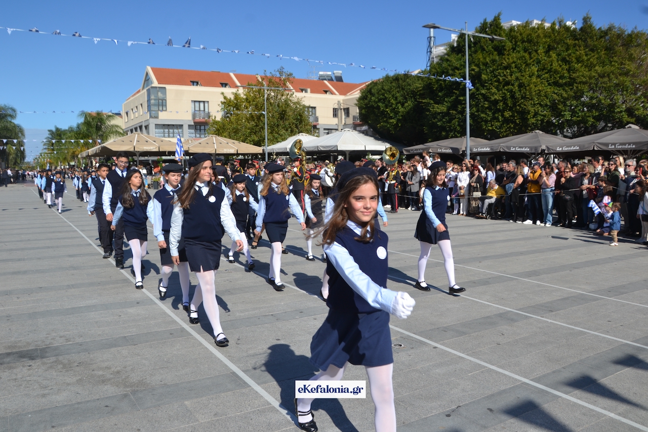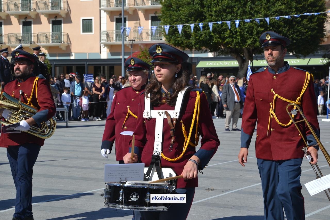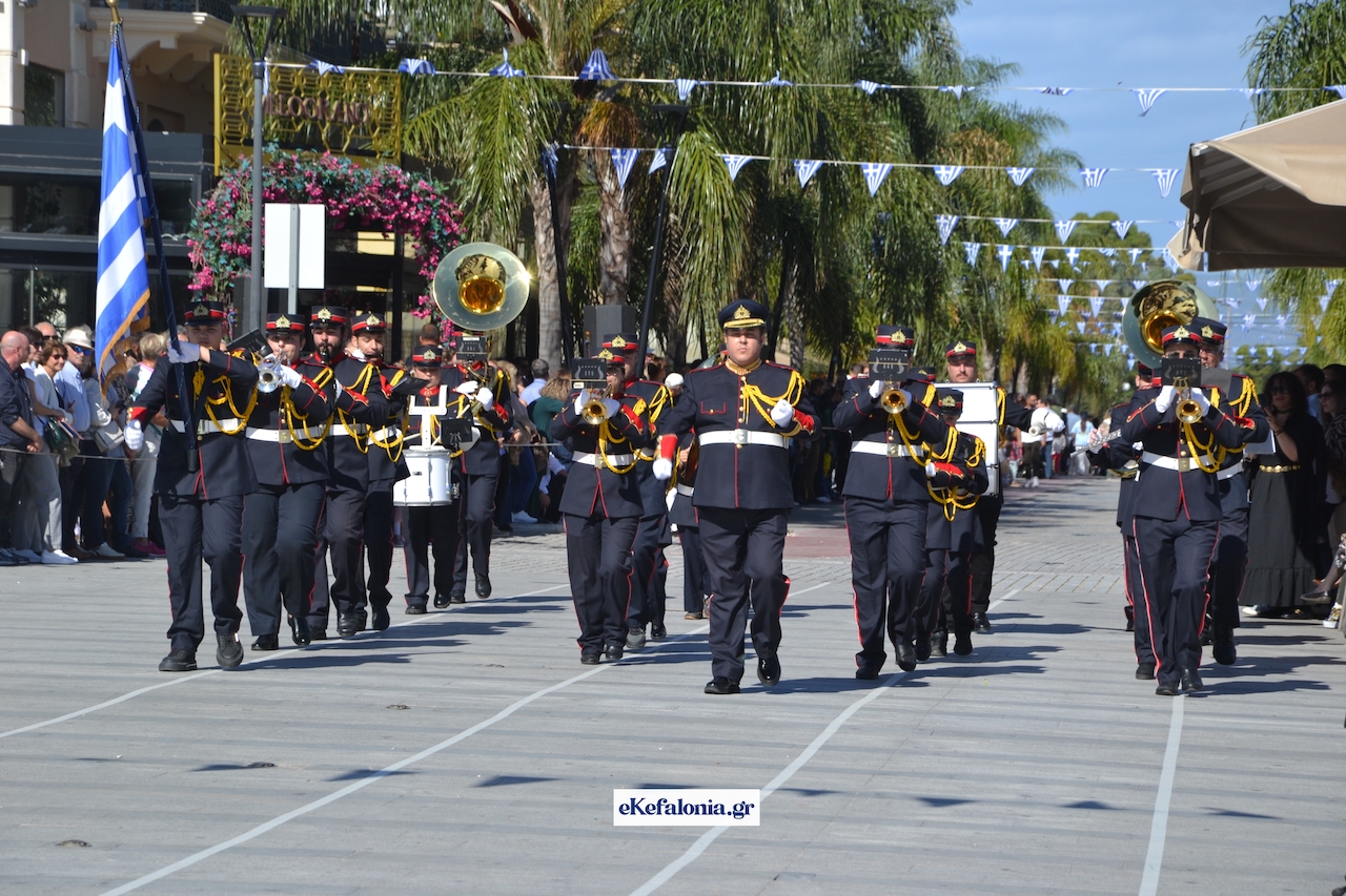 Την παρέλαση πλαισίωσαν μουσικά η Φιλαρμονική Σχολή Κεφαλληνίας και η Φιλαρμονική του Δήμου Αργοστολίου «Διονύσης Λαυράγκας».