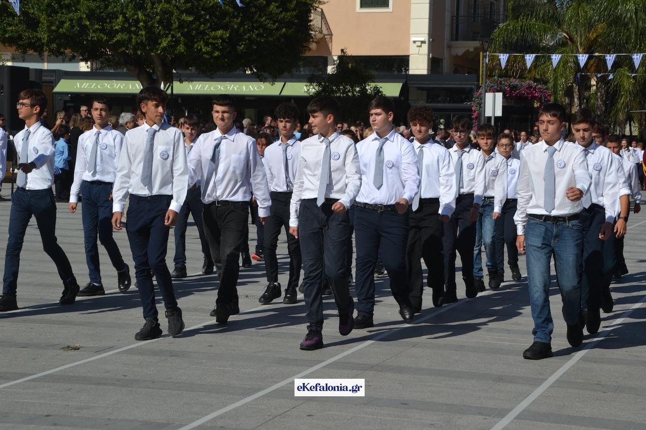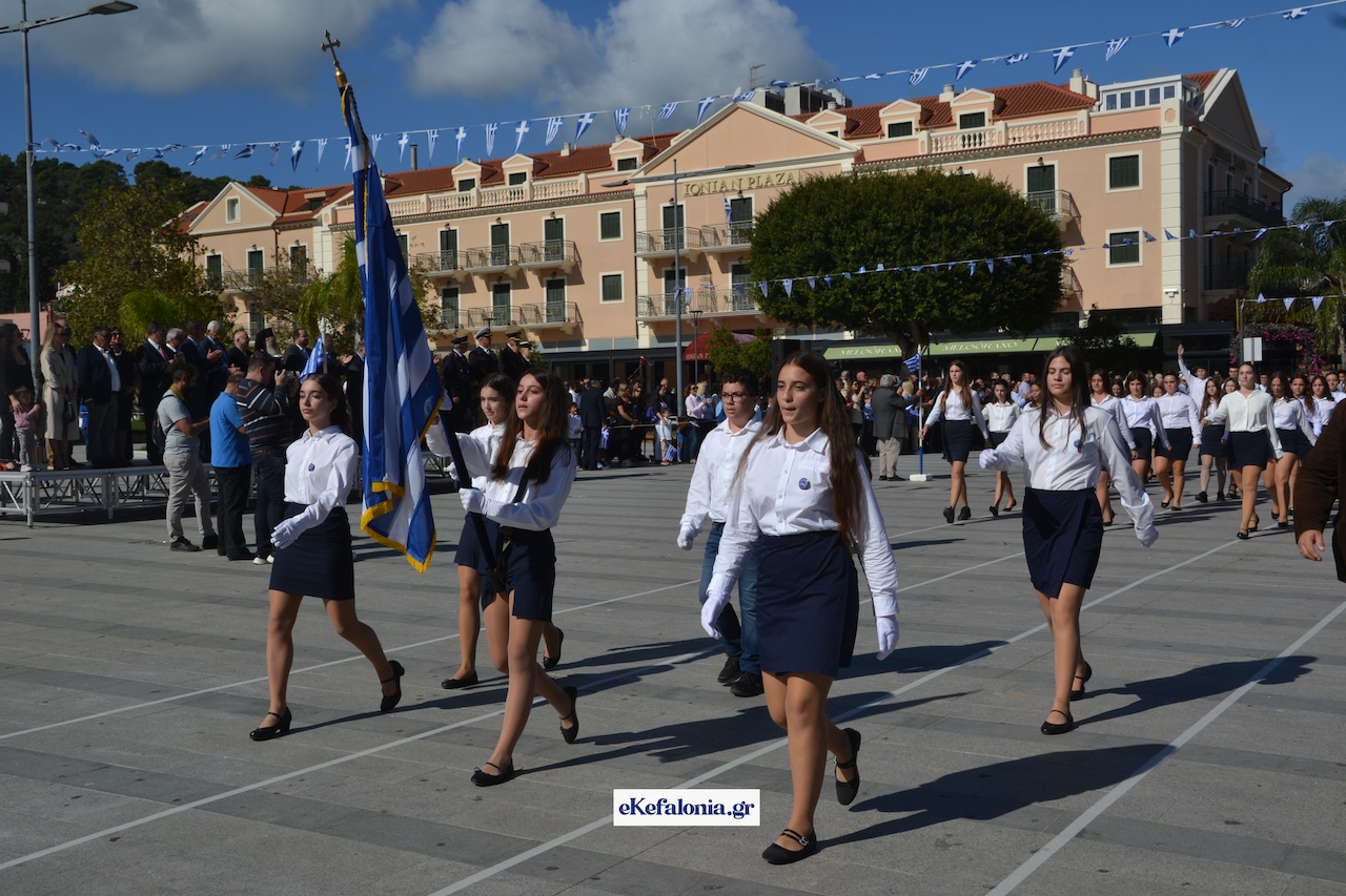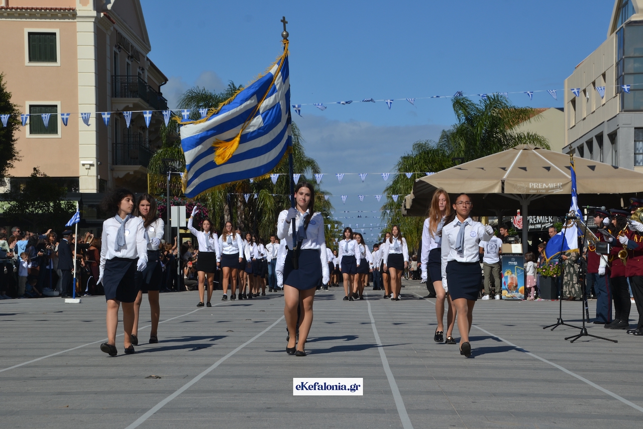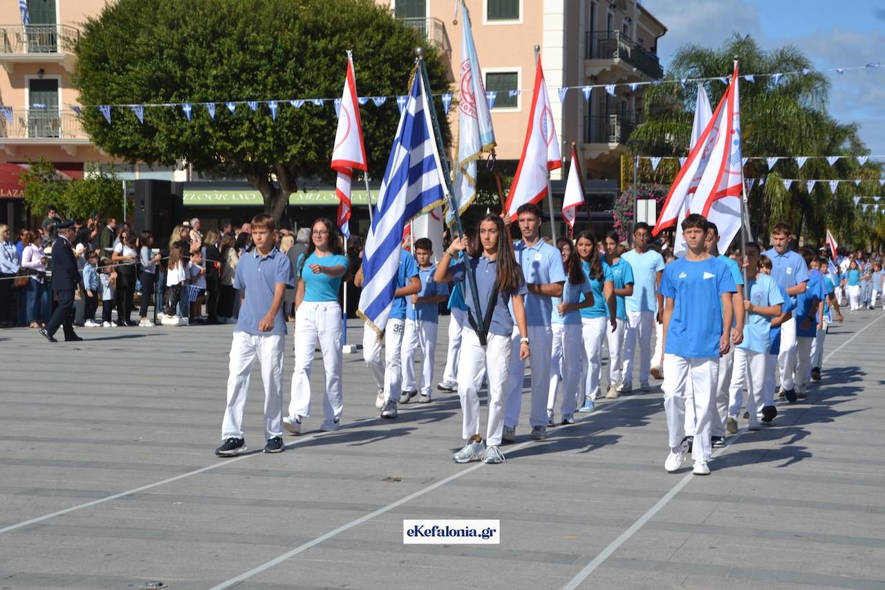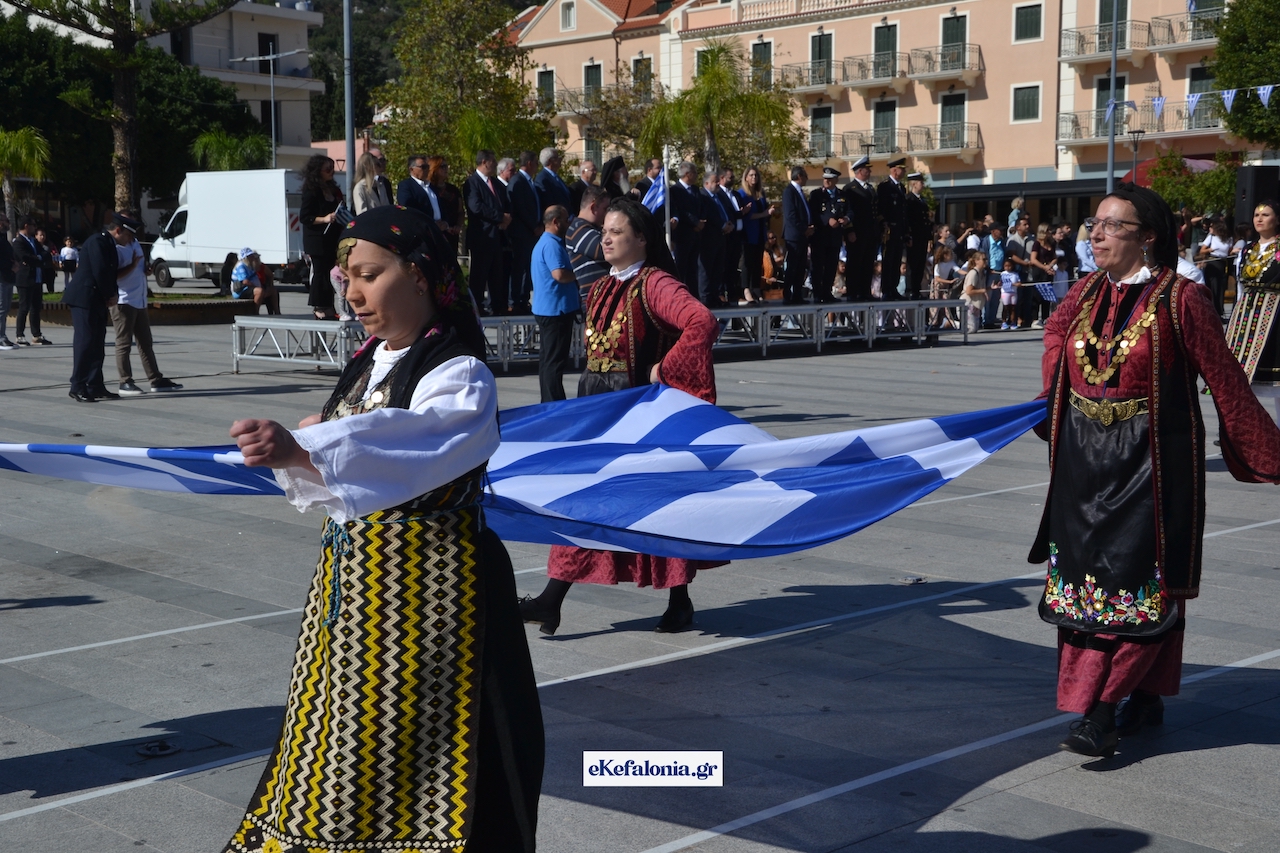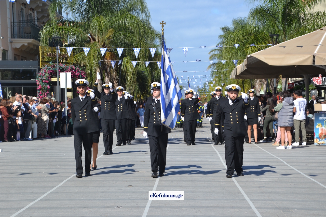 Την παρέλαση πλαισίωσαν μουσικά η Φιλαρμονική Σχολή Κεφαλληνίας και η Φιλαρμονική του Δήμου Αργοστολίου «Διονύσης Λαυράγκας».