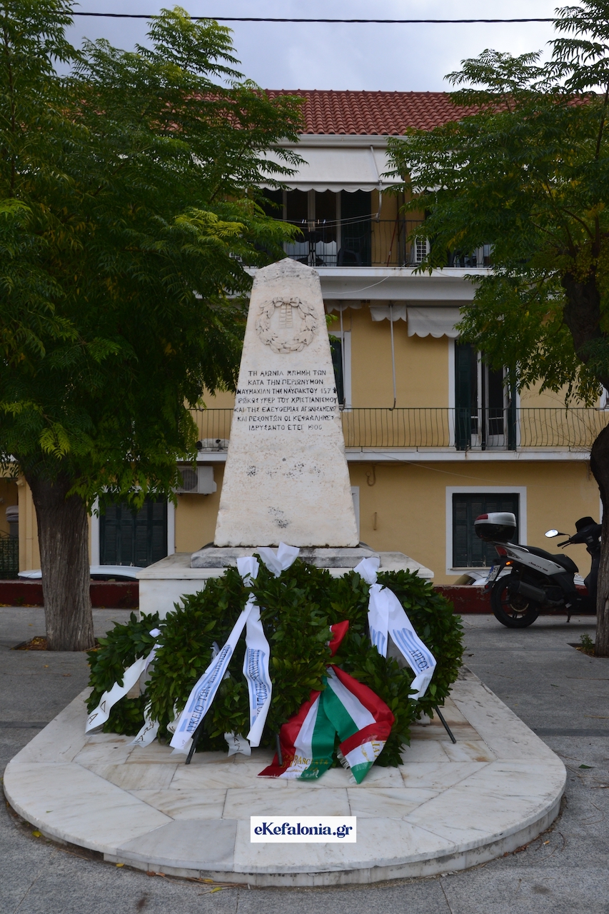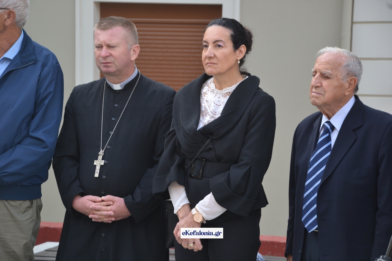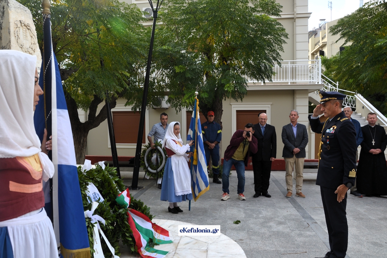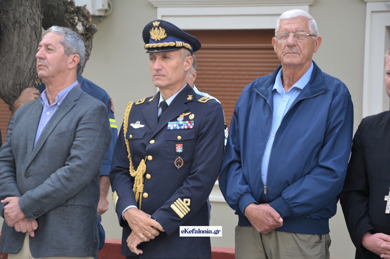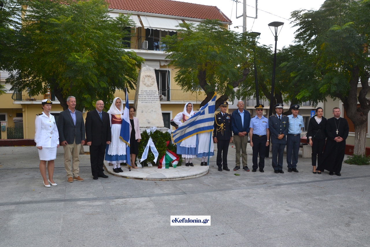 Στεφάνια κατέθεσαν ο Αντιπεριφερειάρχης κ. Σωτήρης Κουρής, ο Αντιδήμαρχος κ. Γιώργος Τσιλιμιδός, ο Στρατιωτικός Ακόλουθος της Ιταλικής Πρεσβείας, Σμήναρχος κ. Maurizio Ortenzi, εκπρόσωποι των σωμάτων ασφαλείας της Κεφαλονιάς, καθώς και μέλη του Λυκείου των Ελληνίδων – Παράρτημα Αργοστολίου.