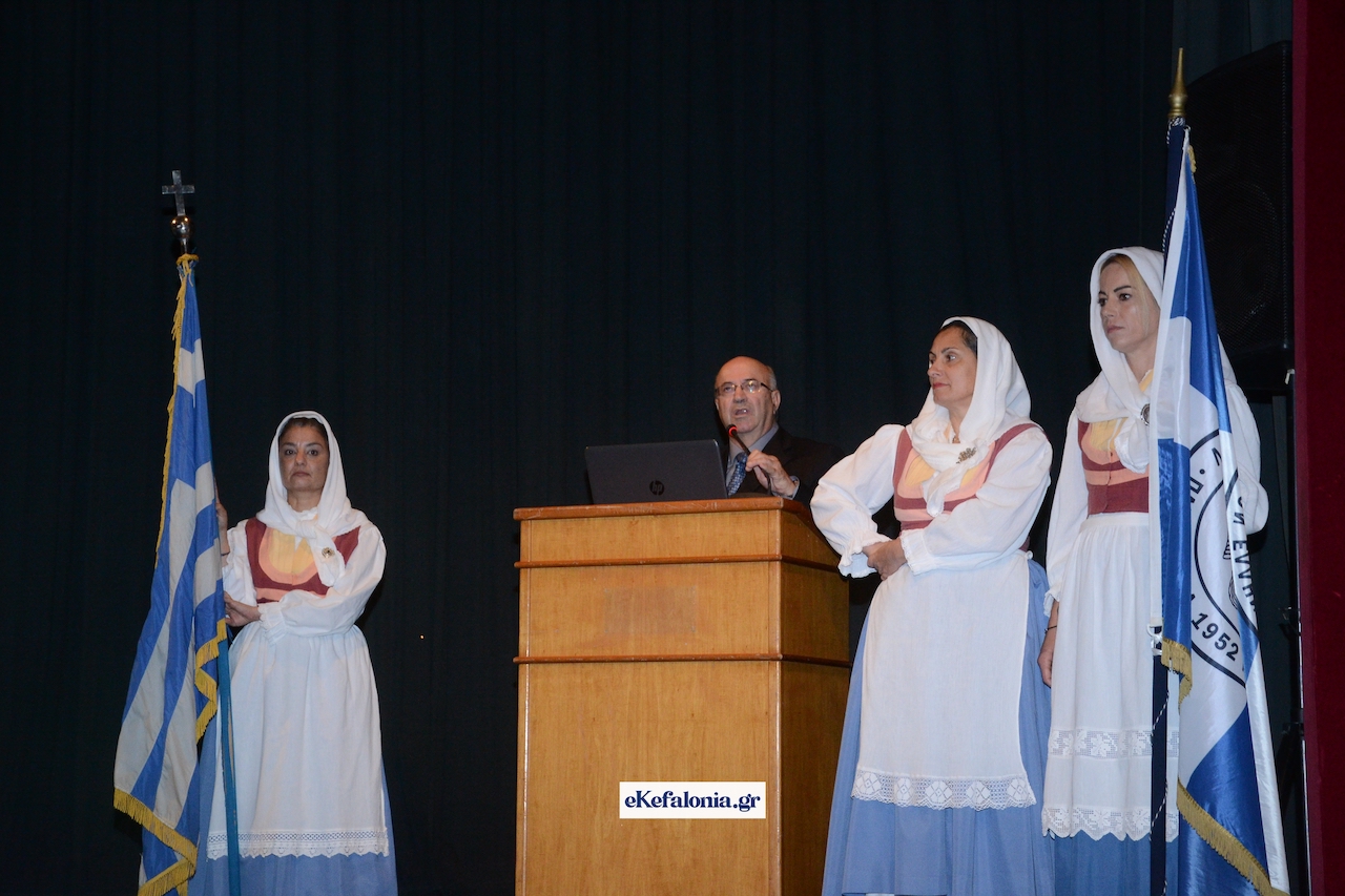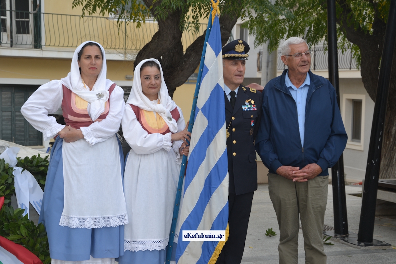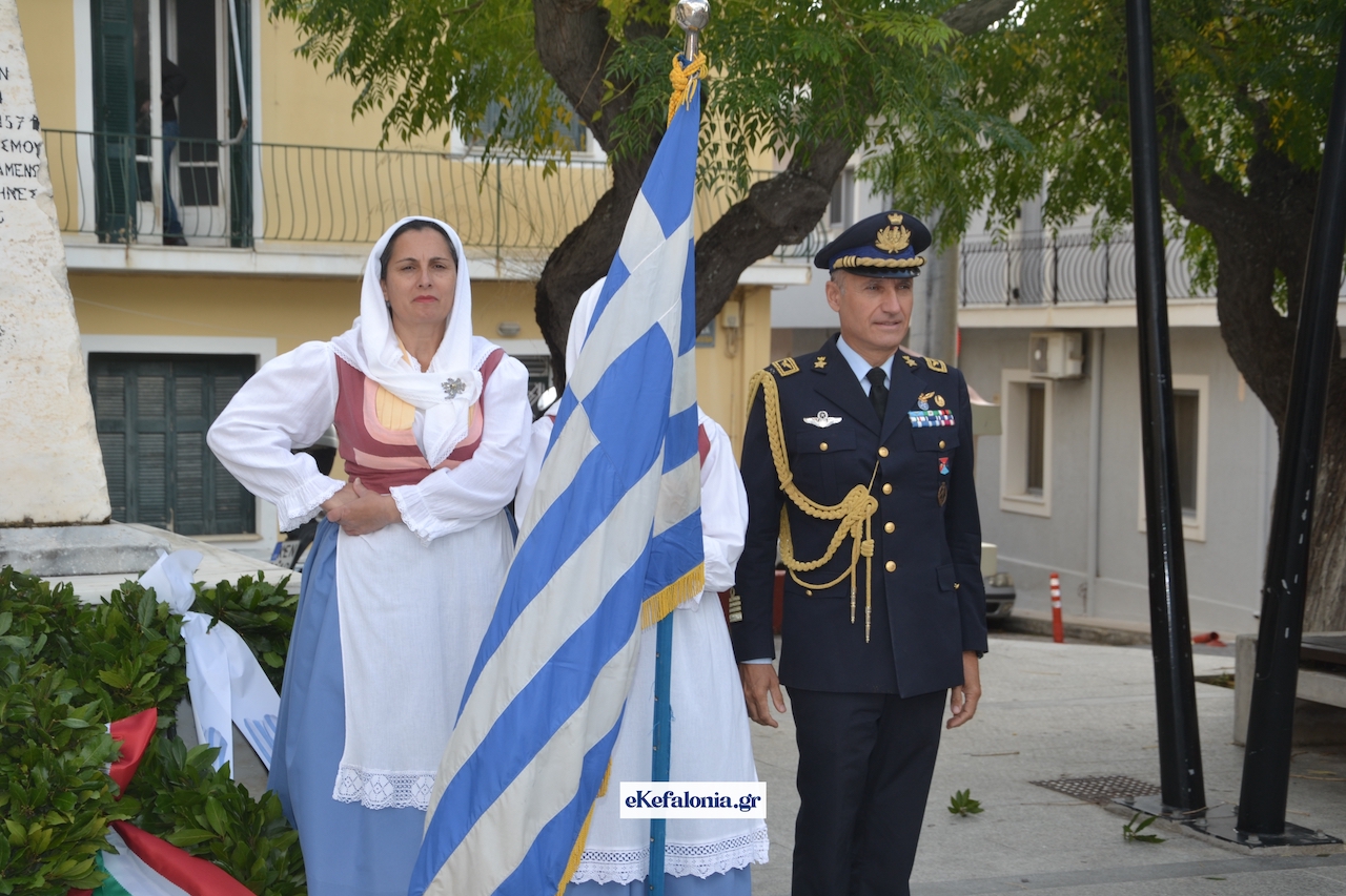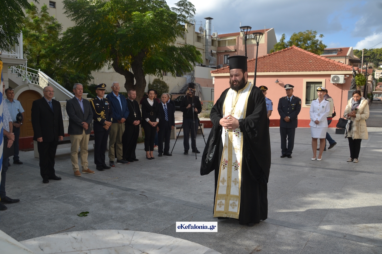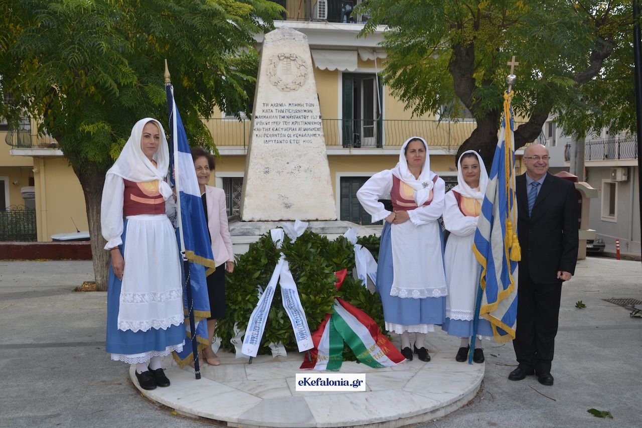 Στεφάνια κατέθεσαν ο Αντιπεριφερειάρχης κ. Σωτήρης Κουρής, ο Αντιδήμαρχος κ. Γιώργος Τσιλιμιδός, ο Στρατιωτικός Ακόλουθος της Ιταλικής Πρεσβείας, Σμήναρχος κ. Maurizio Ortenzi, εκπρόσωποι των σωμάτων ασφαλείας της Κεφαλονιάς, καθώς και μέλη του Λυκείου των Ελληνίδων – Παράρτημα Αργοστολίου.