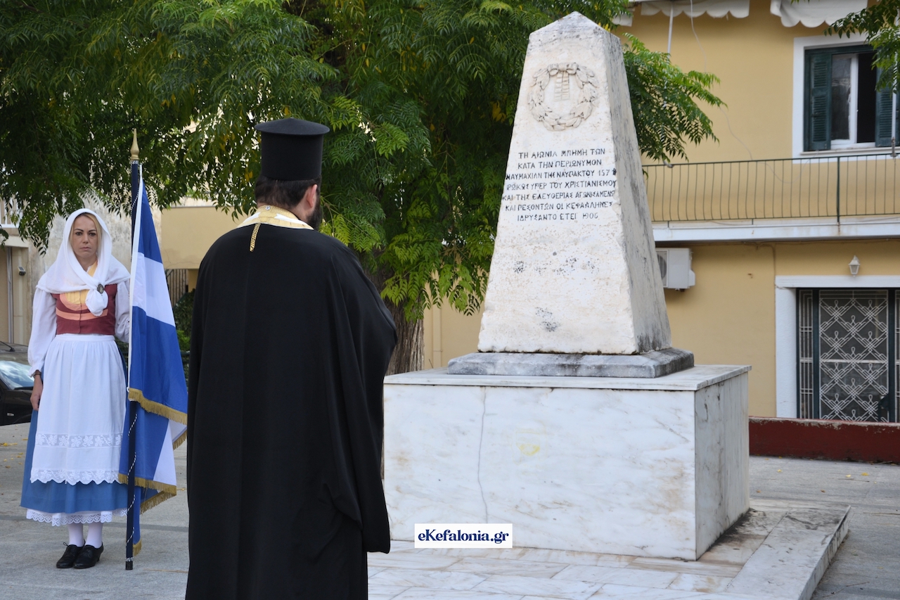 Στη σεμνή τελετή παρευρέθηκαν σύσσωμη η πολιτική ηγεσία του νησιού, καθώς και εκπρόσωποι κομμάτων, φορέων και σωμάτων ασφαλείας. Μετά την καθιερωμένη δοξολογία στον Ιερό Ναό Ταξιαρχών στο Αργοστόλι, πραγματοποιήθηκε κατάθεση στεφάνων στη μνήμη των ηρώων της ναυμαχίας.