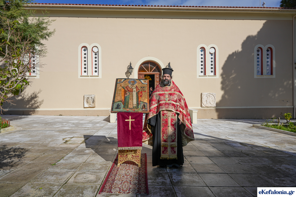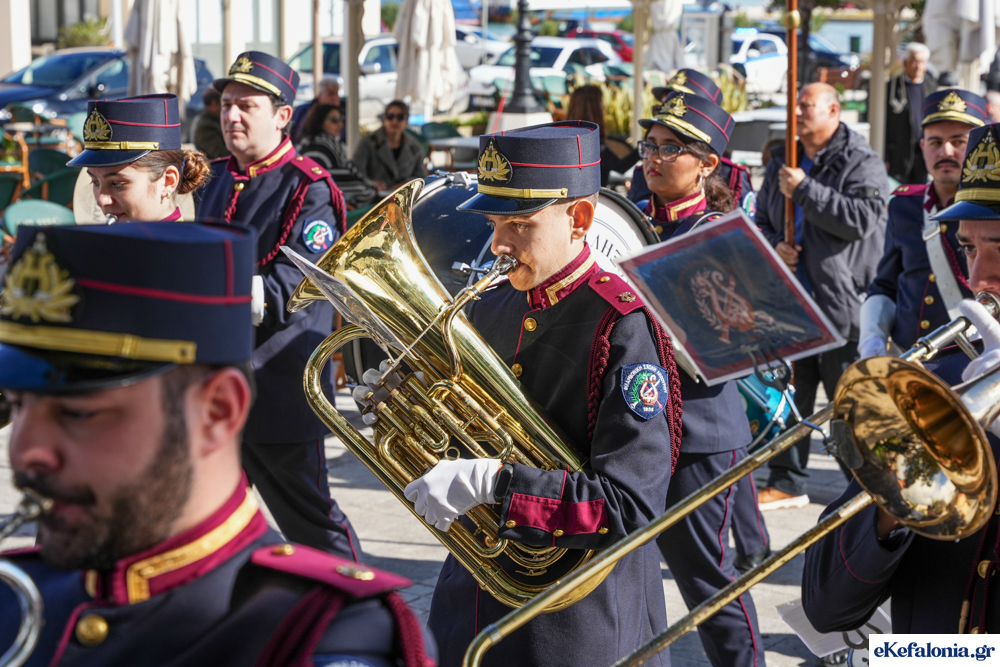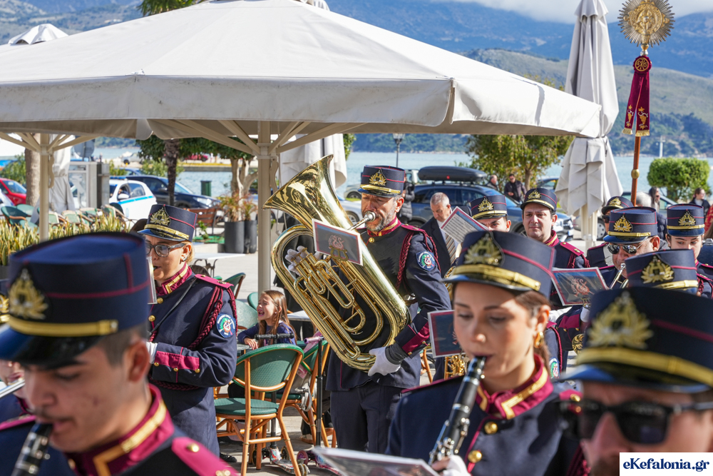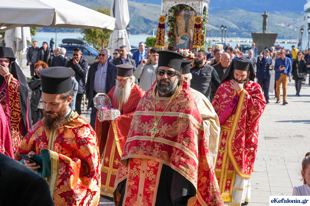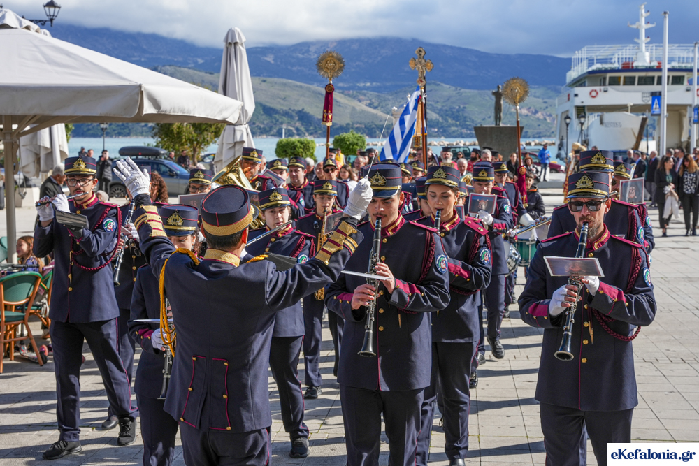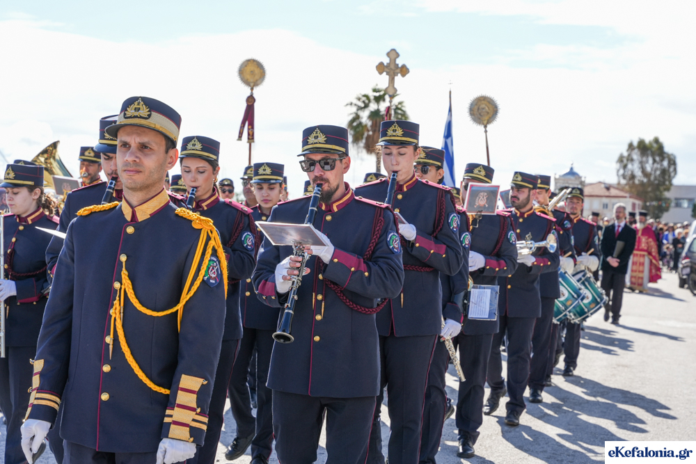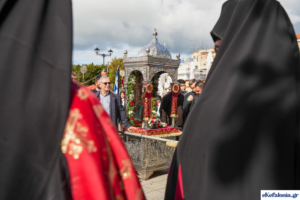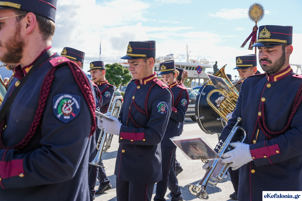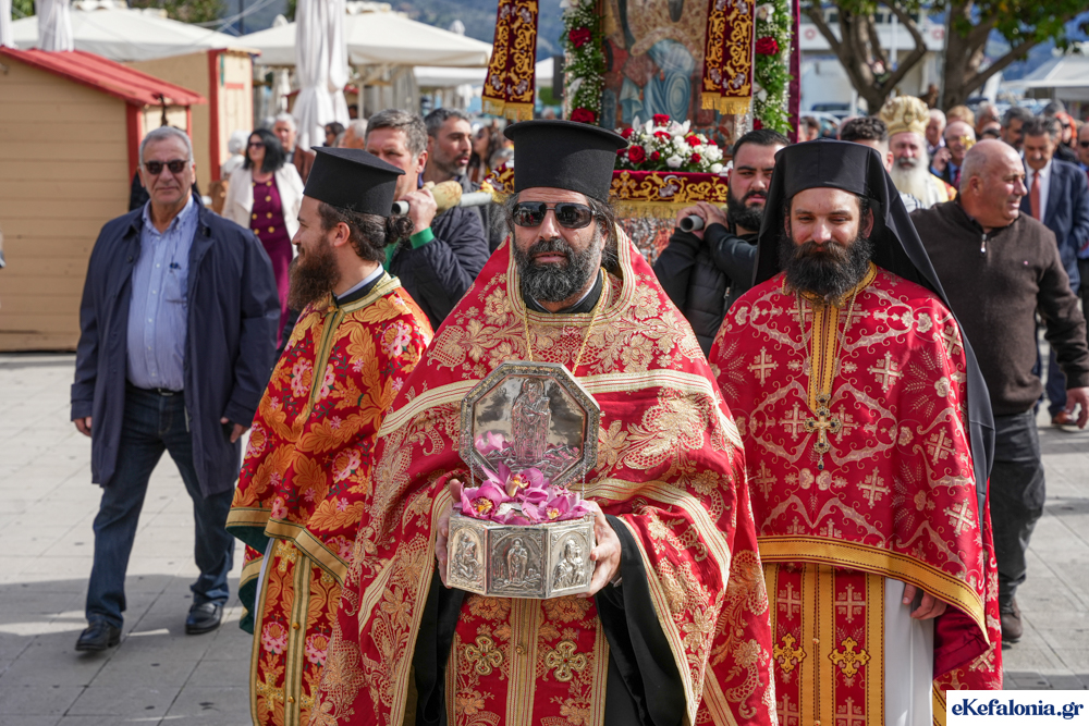 Στις 11 περίπου ξεκίνησε η λιτάνευση της ιερής εικόνας και του ιερού Λειψάνου του Αγίου στους δρόμους του Ληξουρίου μέχρι την κεντρική πλατεία, με ενδιάμεση στάση το κελί του Αγίου Παναγή Μπασιά. Την πομπή ακολούθησαν, καθόλη την πορεία της, η Φιλαρμονική Σχολή Ληξουρίου, μαθητές σχολείων με όμορφες φορεσιές και εκατοντάδες πιστοί.