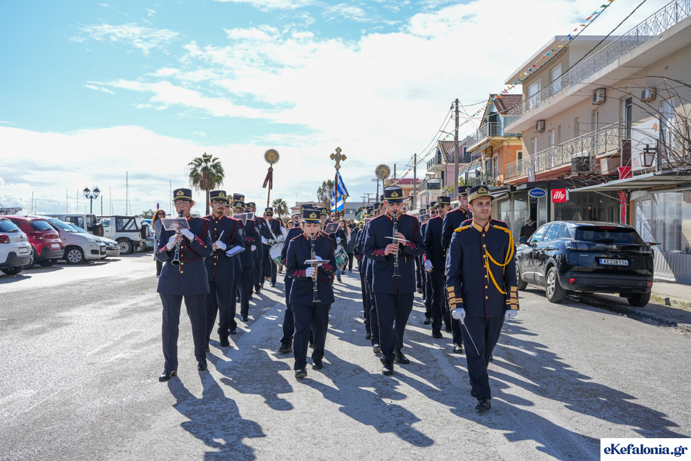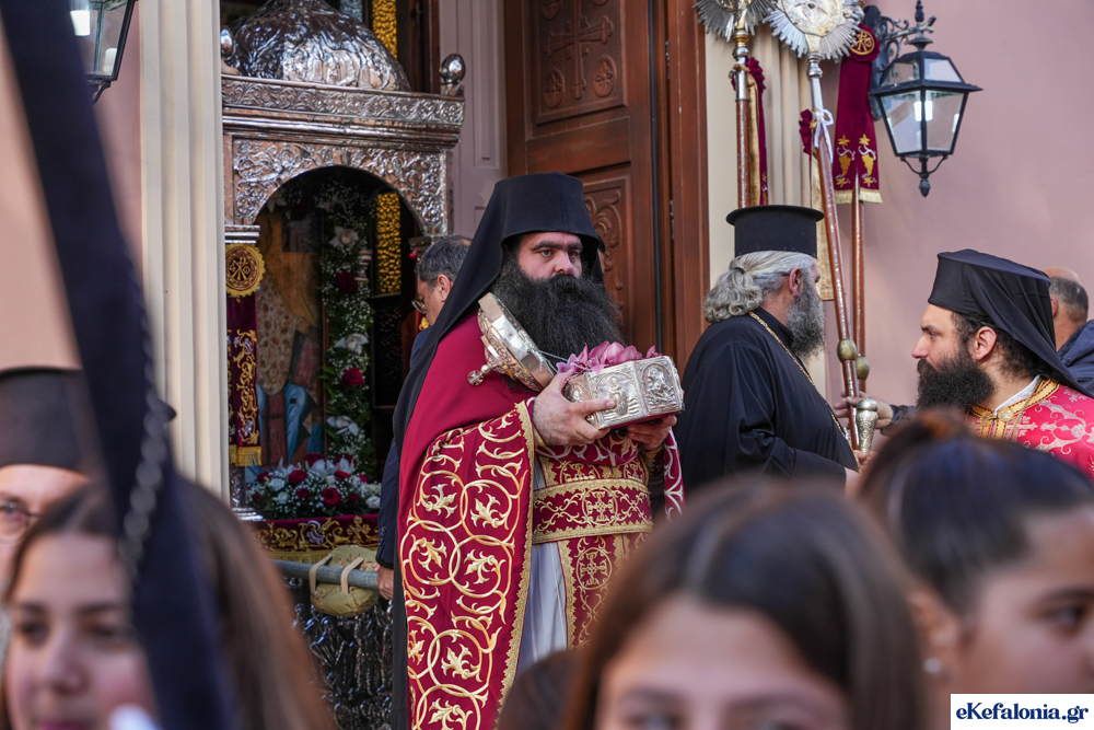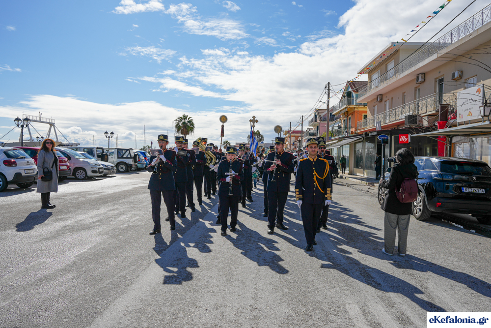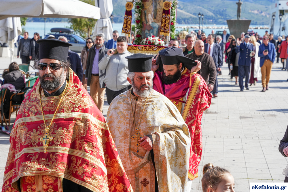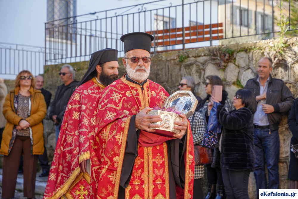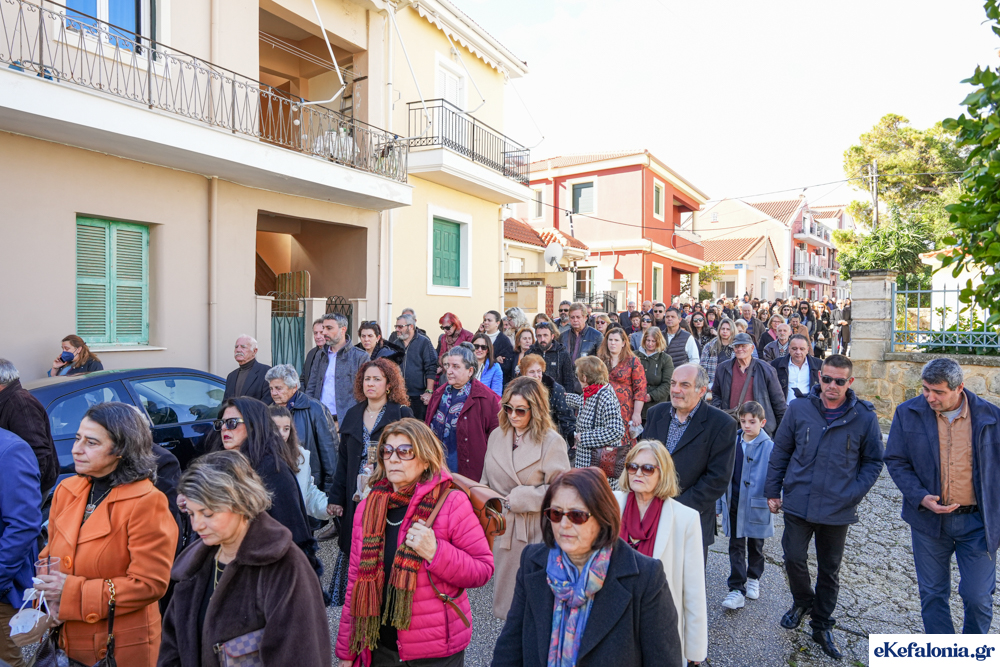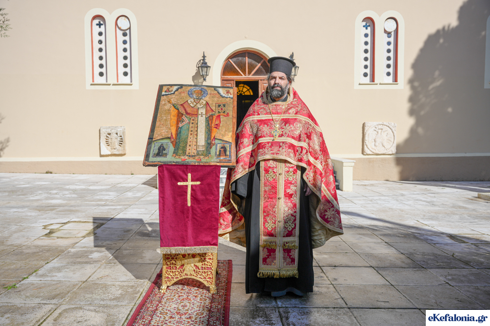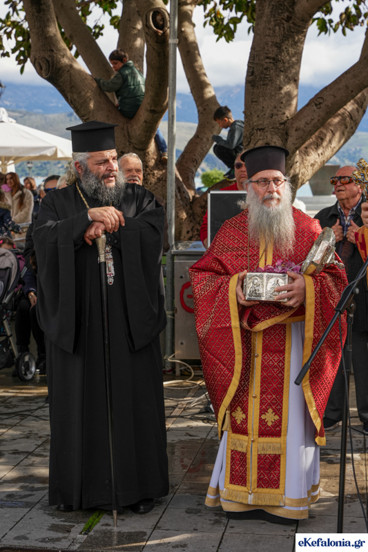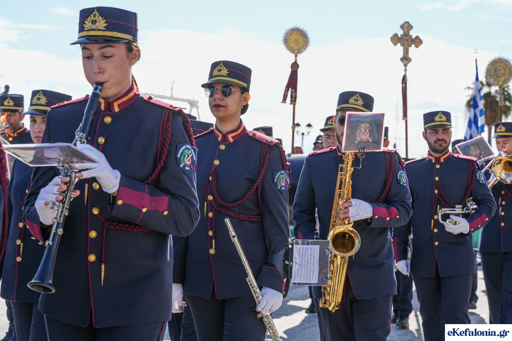 Στις 11 περίπου ξεκίνησε η λιτάνευση της ιερής εικόνας και του ιερού Λειψάνου του Αγίου στους δρόμους του Ληξουρίου μέχρι την κεντρική πλατεία, με ενδιάμεση στάση το κελί του Αγίου Παναγή Μπασιά. Την πομπή ακολούθησαν, καθόλη την πορεία της, η Φιλαρμονική Σχολή Ληξουρίου, μαθητές σχολείων με όμορφες φορεσιές και εκατοντάδες πιστοί.