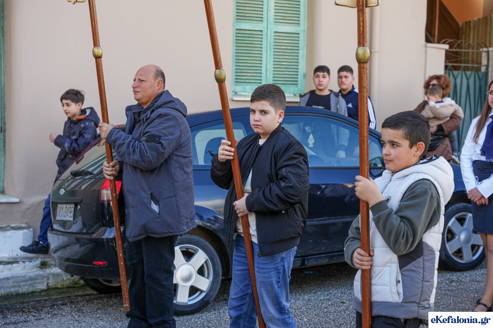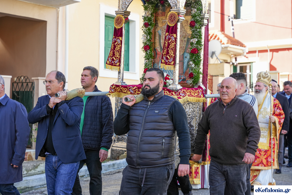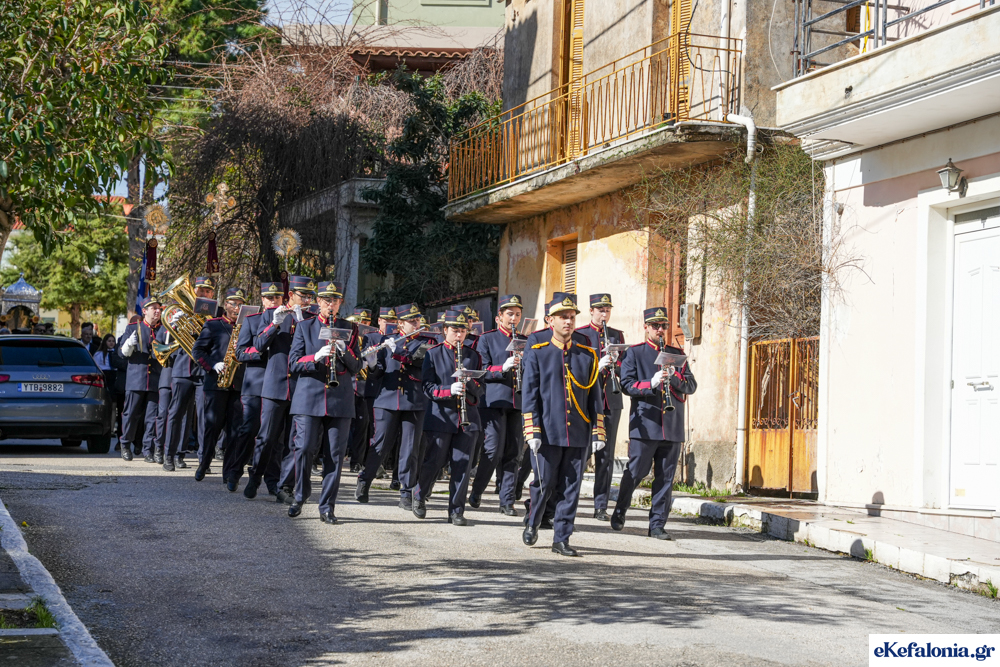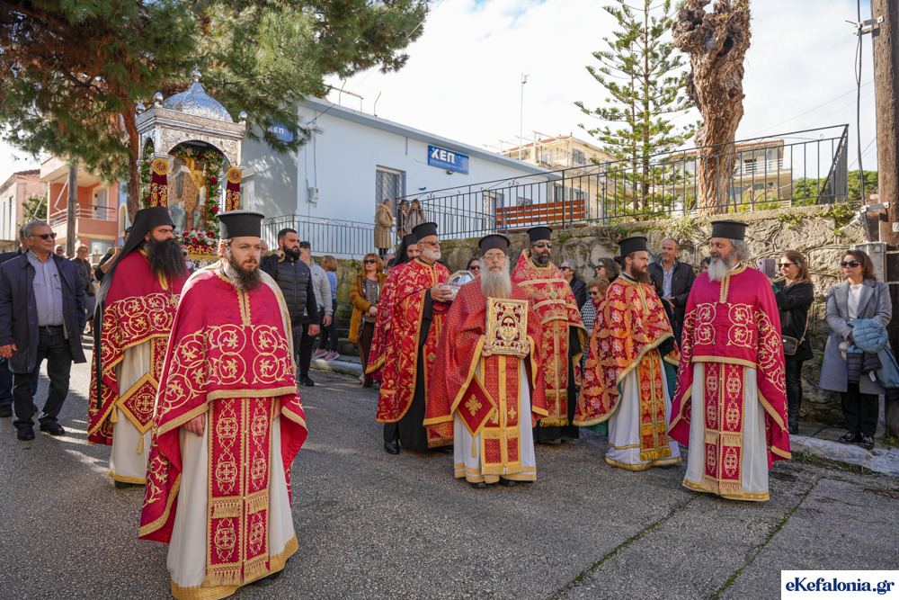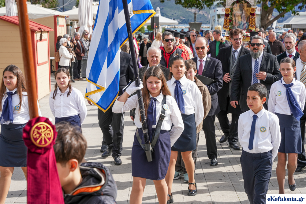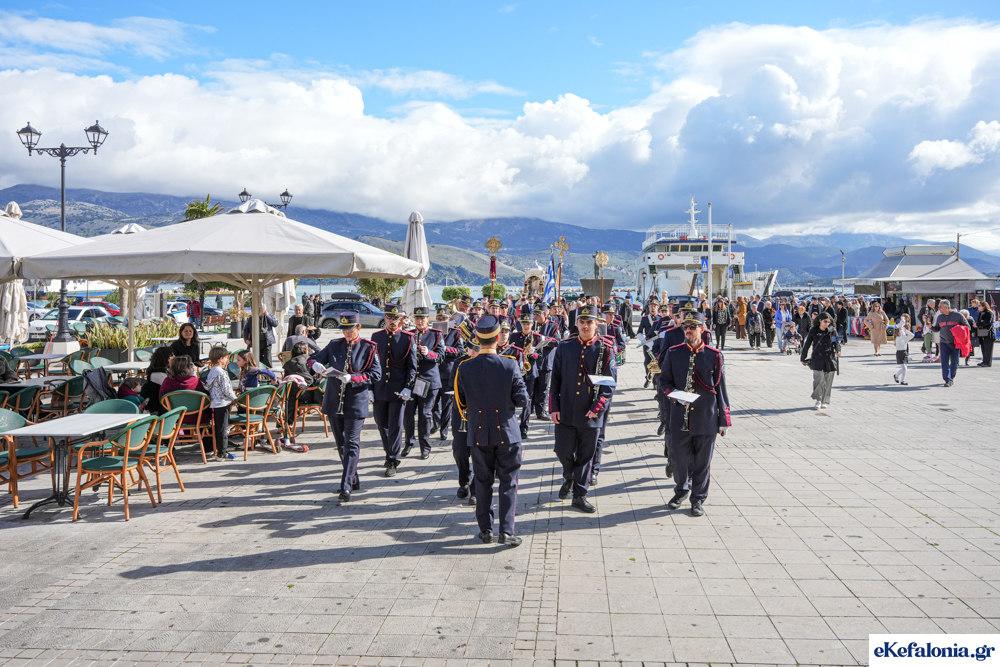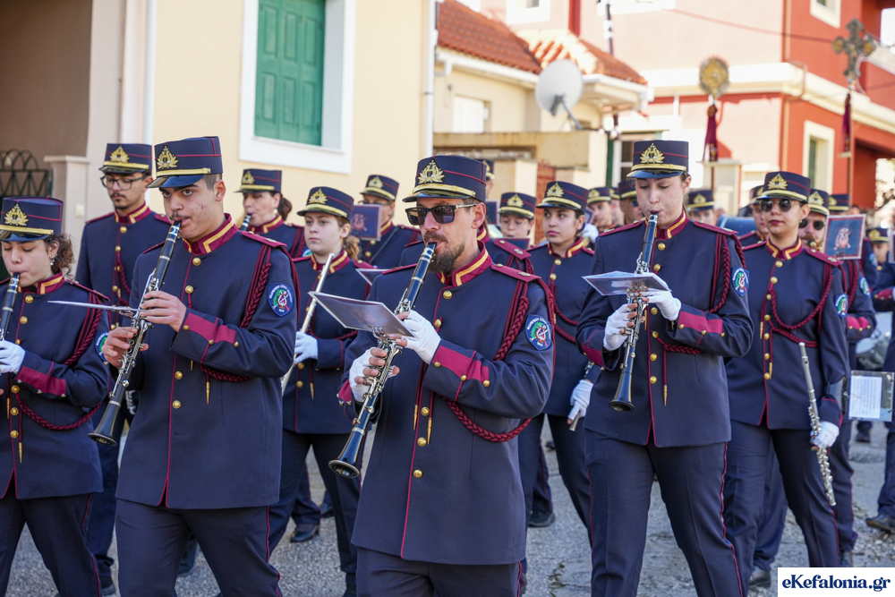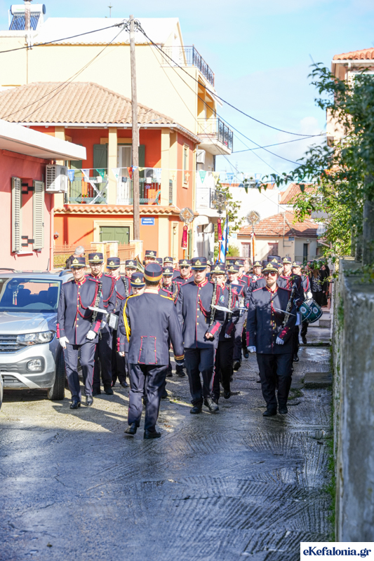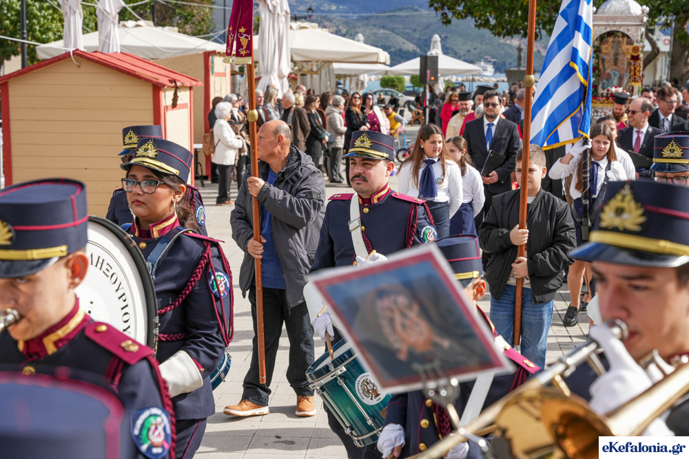 Στις 11 περίπου ξεκίνησε η λιτάνευση της ιερής εικόνας και του ιερού Λειψάνου του Αγίου στους δρόμους του Ληξουρίου μέχρι την κεντρική πλατεία, με ενδιάμεση στάση το κελί του Αγίου Παναγή Μπασιά. Την πομπή ακολούθησαν, καθόλη την πορεία της, η Φιλαρμονική Σχολή Ληξουρίου, μαθητές σχολείων με όμορφες φορεσιές και εκατοντάδες πιστοί.