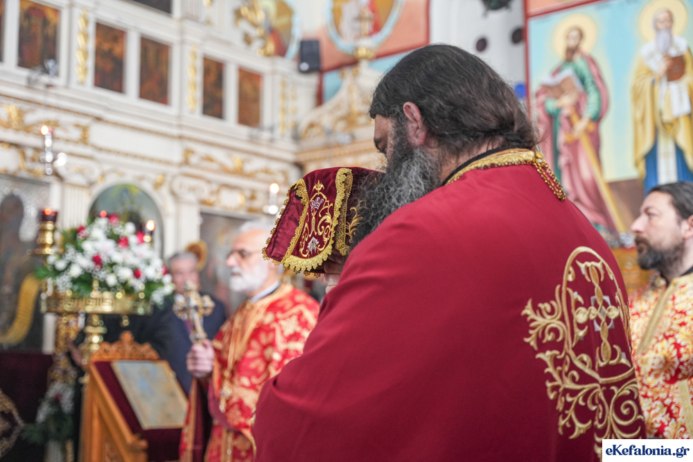 Σήμερα το πρωϊ τελέστηκε πολυαρχιερατική Θεία Λειτουργία παρουσία πλήθους πιστών από όλο το νομό και χοροστατούντος του Θεοφιλεστάτου Επισκόπου Ταλαντίου κ. Θεολόγου και του οικείου Μητροπολίτη Κεφαλληνίας κ. Δημητρίου, ενώ η Εκκλησιαστική Χορωδία Ληξουρίου απέδωσε εξαιρετικά τους ύμνους.