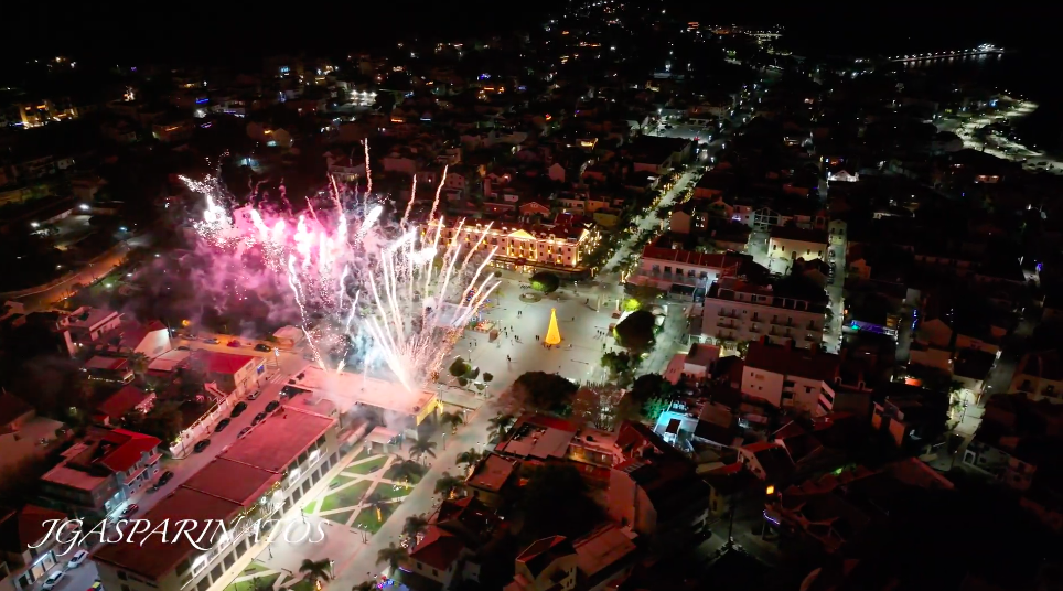Η πλατεία ντύνεται φως, τα πυροτεχνήματα γράφουν ευχές στον ουρανό και η Κεφαλονιά υποδέχεται το νέο έτος όπως της αξίζει.