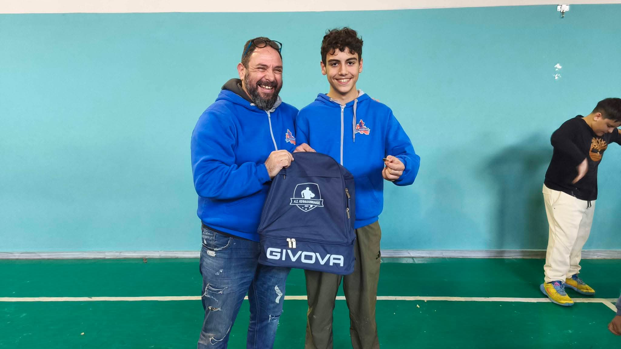 Το τυχερό φλουρί κέρδισε ο δημοφιλής νεαρός παίκτης της ομάδας Χαράλαμπος Άννινος και μαζί με αυτό τα δώρα που ήταν ένα αθλητικό σακίδιο και μια μπάλα του μπάσκετ!