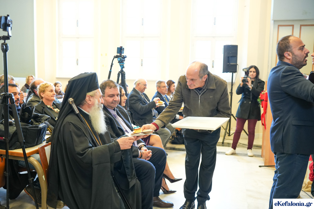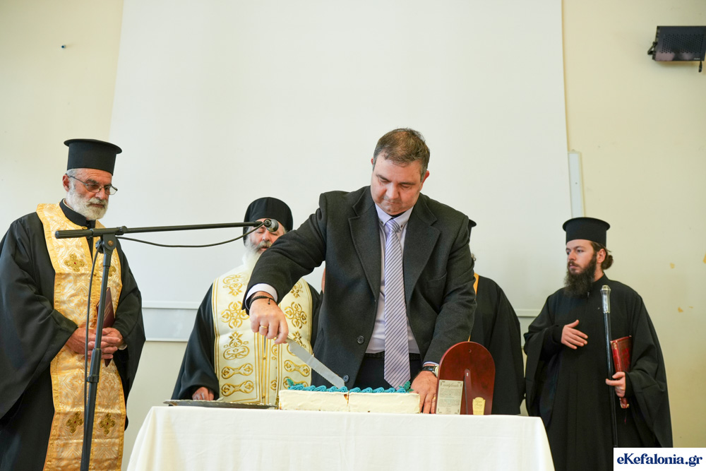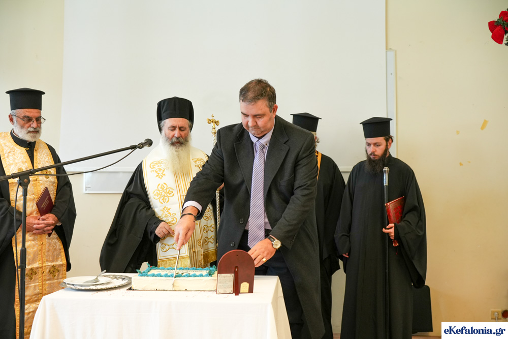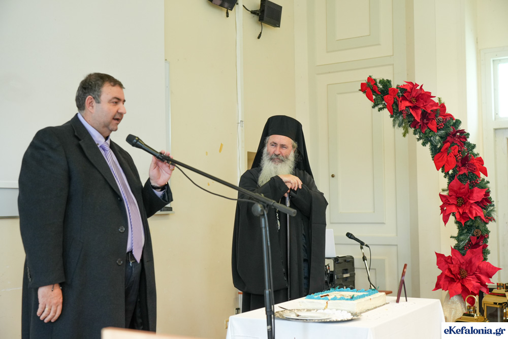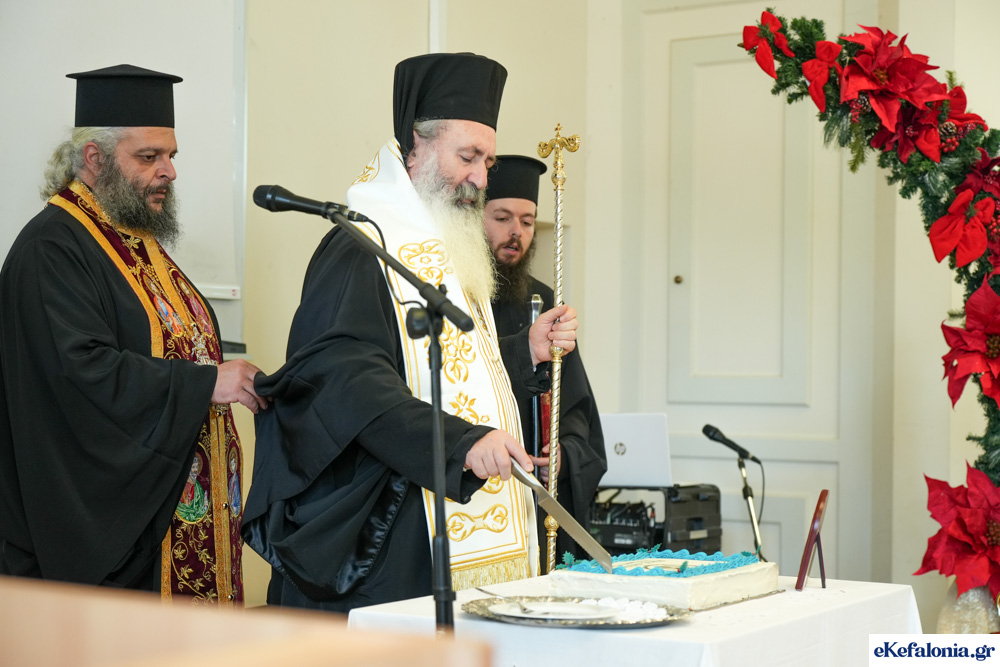 Την πίτα ευλόγησε ο Σεβασμιότατος Μητροπολίτης Κεφαλληνίας κ. Δημήτριος, απευθύνοντας ευχές για υγεία, πρόοδο και δημιουργία στη νέα χρονιά.