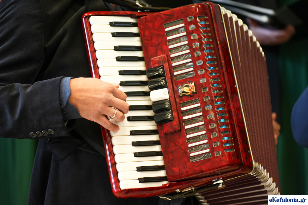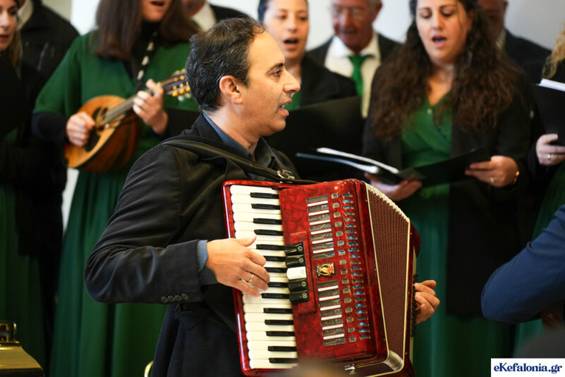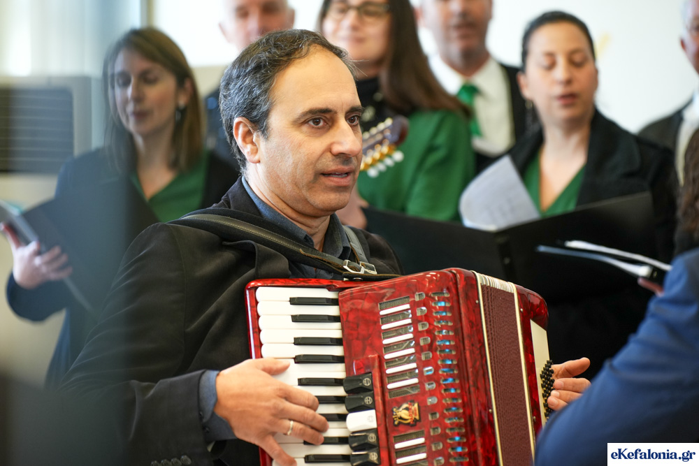 Η Γρηγόρης Βλαχουλης δίνει τον τόνο -με τον ακορντεόν του- στη Μεικτή Χορωδία Ληξουρίου