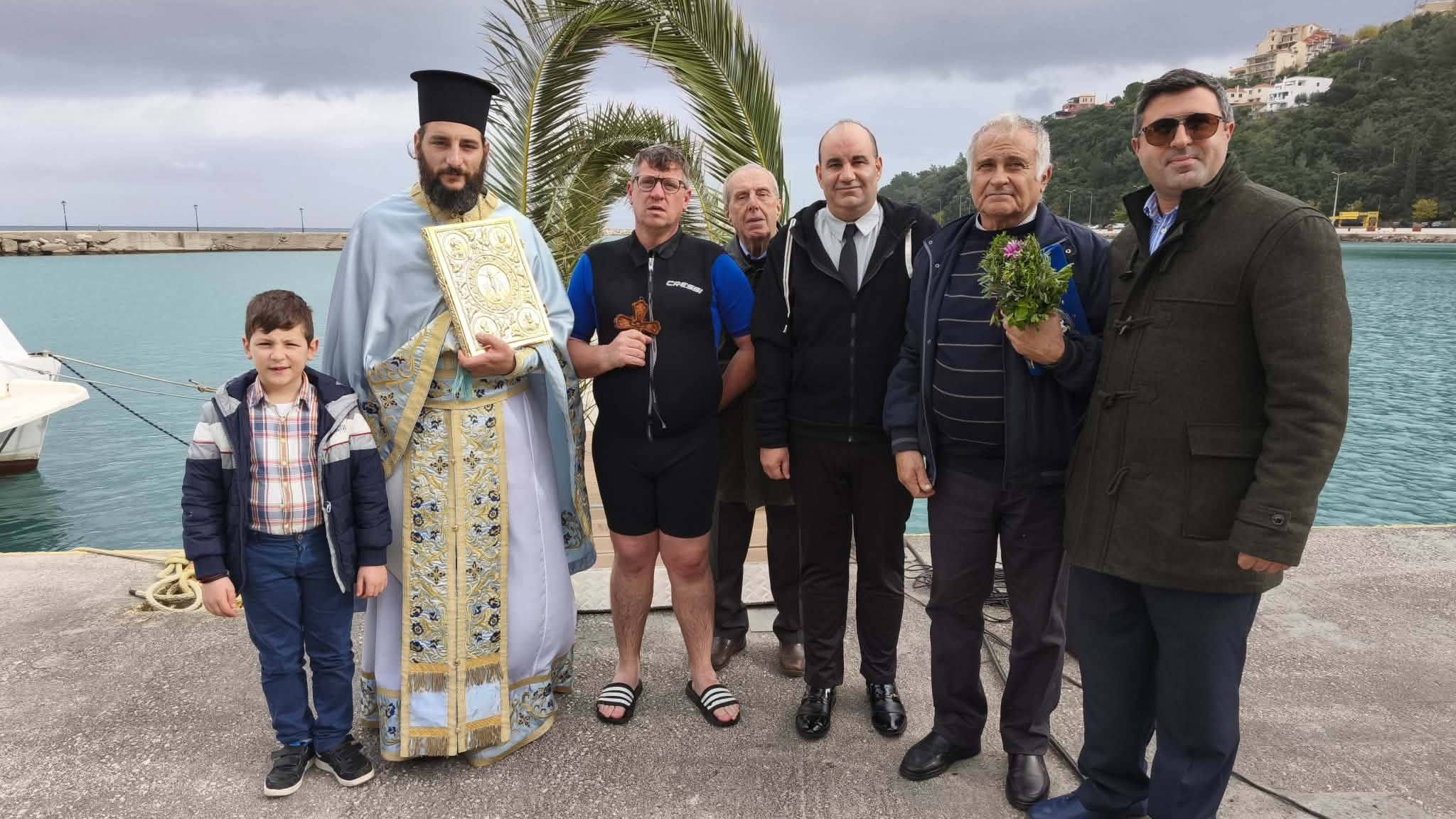 Τέλος, πιστοί πήγαν και στο Φέρι Μποτ Fior Di Levante των φιλόξενων Καπετάνιων Νίκου Γρηγορόπουλου και Ηλία Τσιγάντε όπου έγινε ο Αγιασμός του Καραβιού και τους δόθηκαν ευχές για καλή χρονιά και καλά ταξίδια! Εκεί, βούτηξαν για τον Τίμιο Σταυρό οι πανάξιοι ναυτικοί του Φέρι Μποτ Fior Di Levante Χρήστος Τσαλούφης και Δημοσθένης Μαρούλης οι οποίοι έλαβαν την ευλογία του Πατέρα Κωνσταντίνου Ζαπάντη!