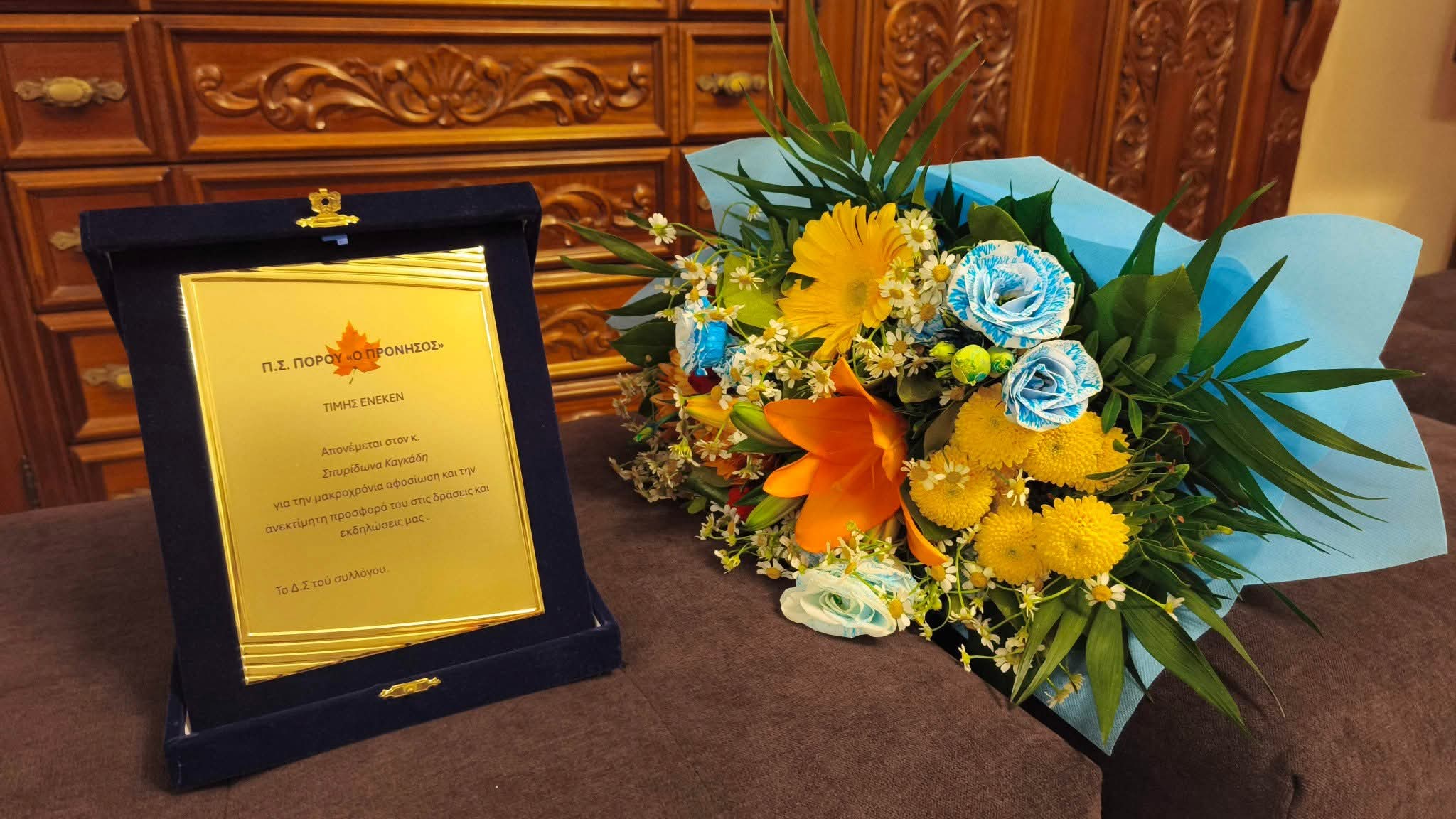 Η Πρόεδρος Ασπασία Σεριάτου ευχαρίστησε, και αυτό με έχει συγκινήσει απίστευτα, και εμένα χαρίζοντας μου μια Τιμητική Πλακέτα και λουλούδια για την μακροχρόνια προσφορά μου στον σύλλογο και στον Πόρο μας!