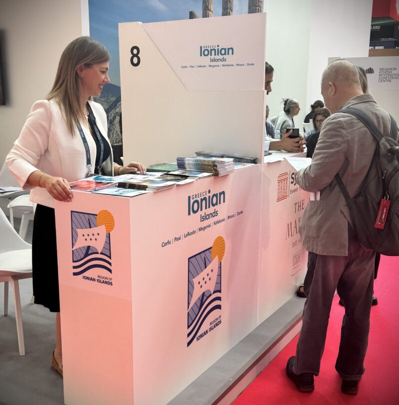 Στο περίπτερο της Περιφέρειας Ιονίων Νήσων πραγματοποιήθηκαν στοχευμένες συναντήσεις με ενδιαφερόμενους επαγγελματίες και τουριστικούς φορείς, που εκδήλωσαν ενδιαφέρον για τον συνεδριακό και θεματικό τουρισμό στα Ιόνια Νησιά, καθώς και για την προώθηση των τοπικών προϊόντων και της γαστρονομικής ταυτότητας της περιοχής.