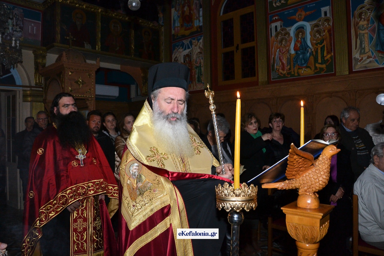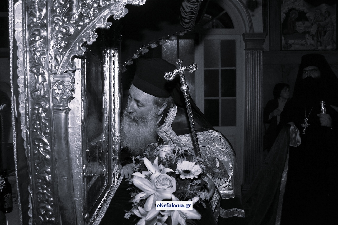 Της ιεράς ακολουθίας χοροστάτησε ο Σεβασμιώτατος Μητροπολίτης Κεφαλληνίας κ. Δημήτριος, πλαισιούμενος από τον Ηγούμενο της Μονής, Αρχιμανδρίτη Γεράσιμο Χαραλαμπάτο, καθώς και από κληρικούς της Ιεράς Μητροπόλεως.