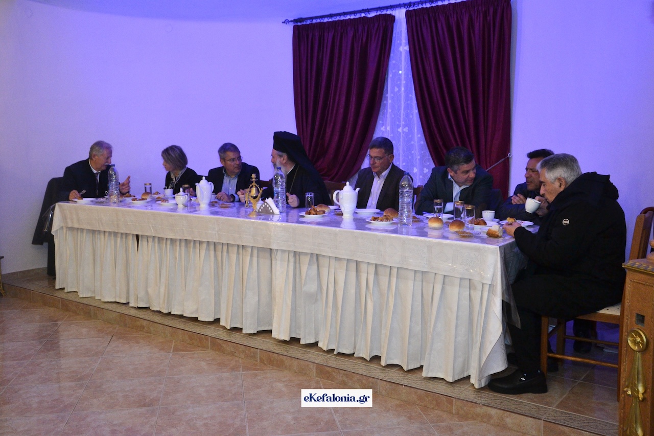 Μεταξύ των παρευρισκομένων διακρίναμε, μεταξύ άλλων, τον βουλευτή των νησιών μας Παναγή Καππάτο με τη σύζυγό του, τον Αντιδήμαρχο Διονύση Κωνσταντάτο, τον δημοτικό σύμβουλο Γιάννη Λυκούδη, καθώς και άλλους εκπροσώπους της τοπικής αυτοδιοίκησης και φορέων. Μετά το πέρας της ακολουθίας, ακολούθησε κέρασμα προς τους πιστούς στο Αρχονταρίκι της Μονής.