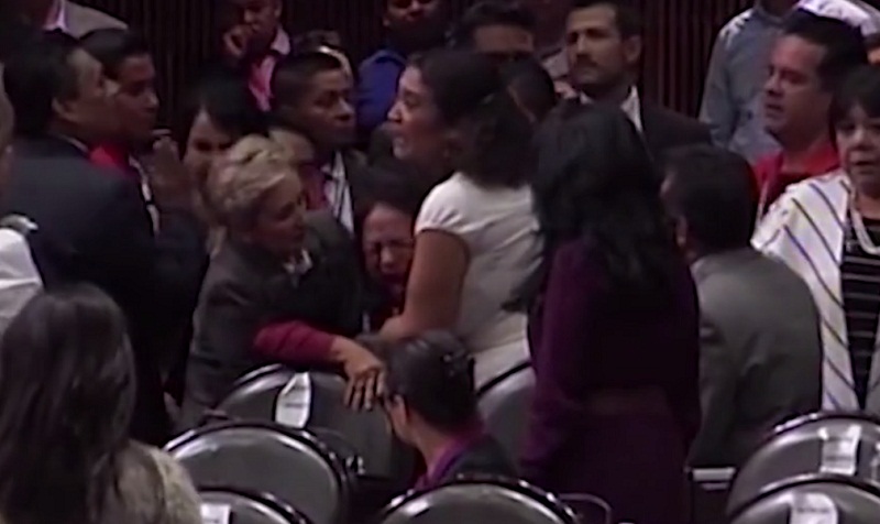 Η συνεδρίαση της Γερουσίας μετατράπηκε σε πεδίο μάχης όταν ο πρόεδρός της, Χεράρδο Φερνάντες Νορόνια, συνεπλάκη με τον δεξιό γερουσιαστή Αλεχάντρο Μορένο. Αφορμή αποτέλεσαν κατηγορίες της συντηρητικής αντιπολίτευσης για σχέσεις του καθεστώτος Μαδούρο με μεξικανικά καρτέλ, αλλά και φερόμενες εκκλήσεις για αμερικανική στρατιωτική επέμβαση.