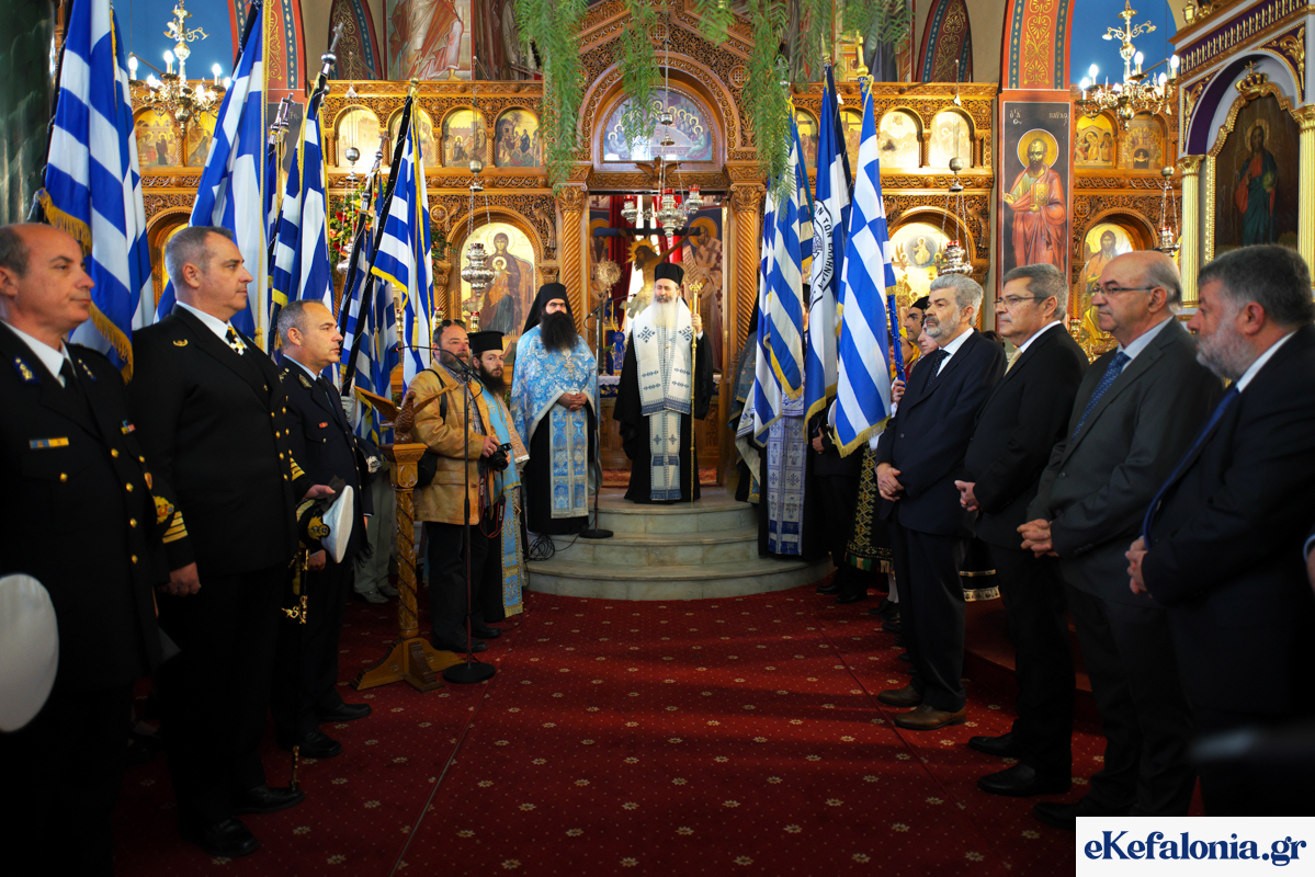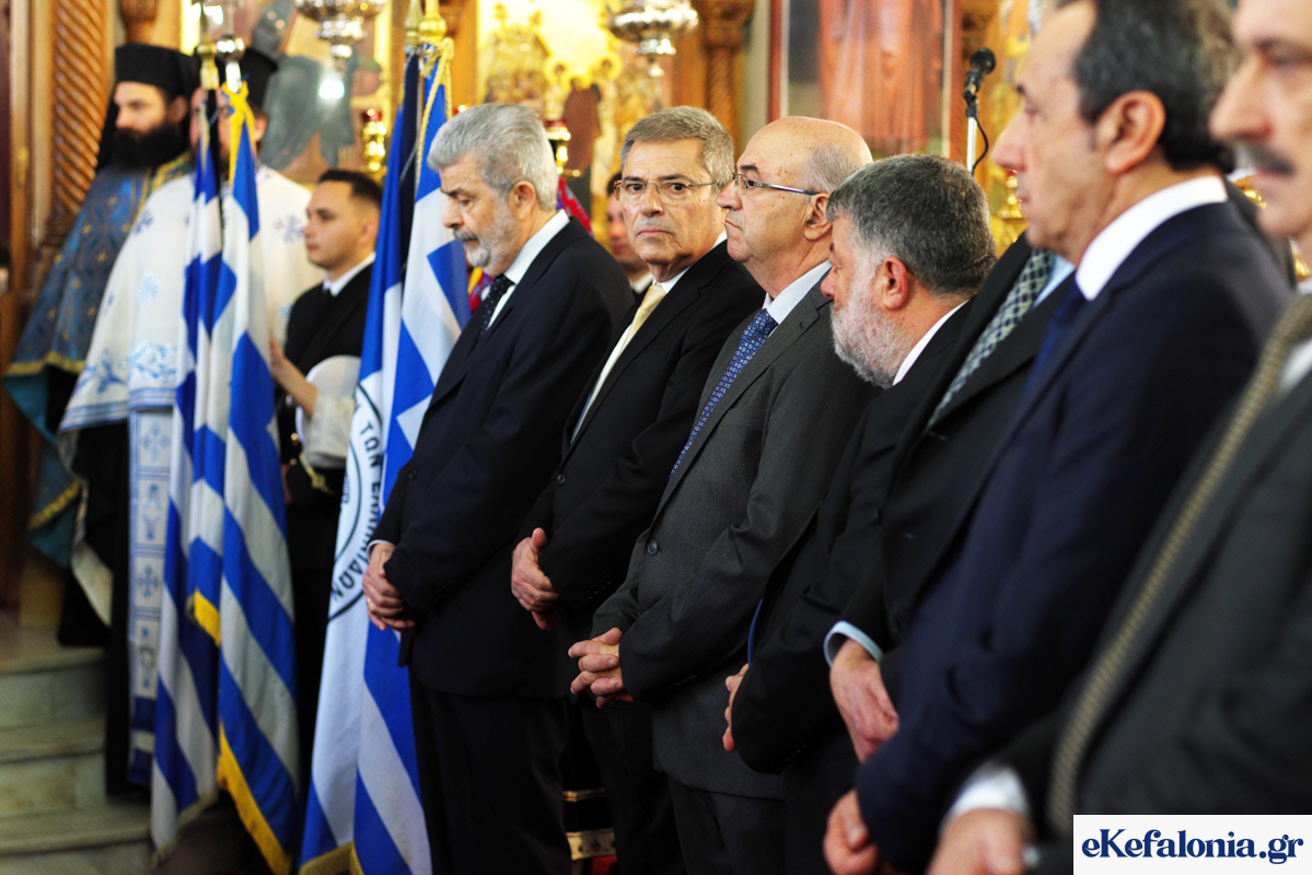 Η Δοξολογία πραγματοποιήθηκε χοροστατούντος του Μητροπολίτη Κεφαλληνίας κ. Δημητρίου, ενώ παρούσα ήταν σύσσωμη η πολιτική ηγεσία του τόπου, καθώς και εκπρόσωποι των σωμάτων ασφαλείας. Την Κυβέρνηση εκπροσώπησε ο συμπατριώτης μας Γενικός Γραμματέας Εμπορίου κ. Ναπολέων Μαραβέγιας.