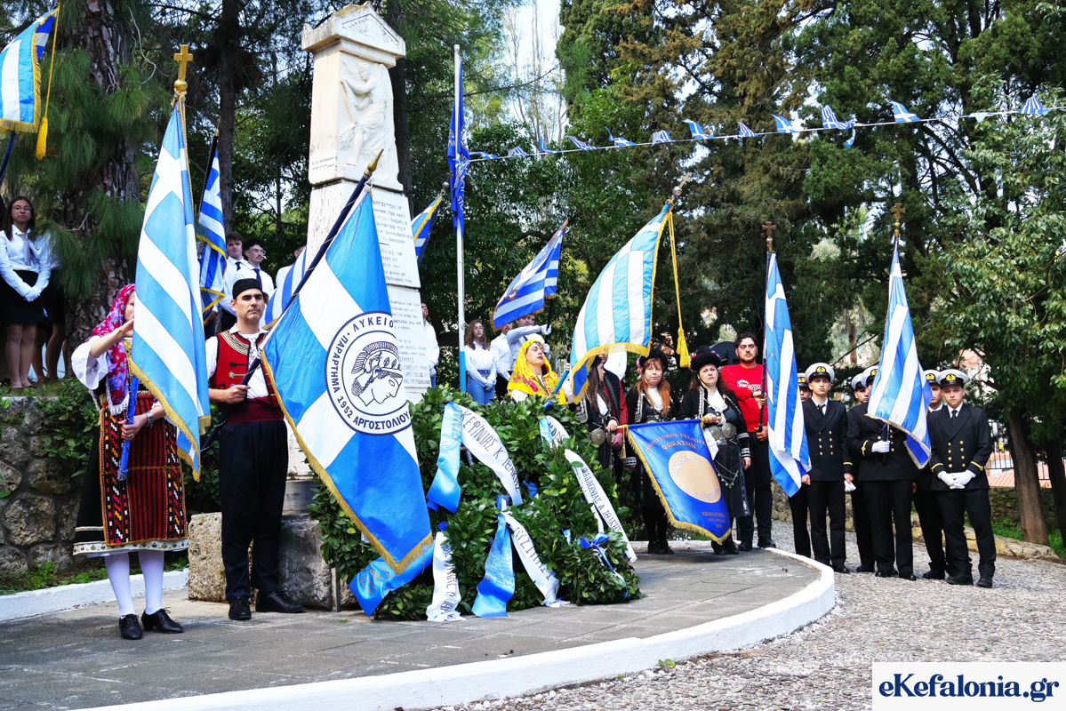 Τον πανηγυρικό της ημέρας εκφώνησε η διευθύντρια του 2ου Δημοτικού Σχολείου Αργοστολίου, Ζέφη Τσοκαναρίδου, αναδεικνύοντας τη σημασία της εθνικής επετείου.