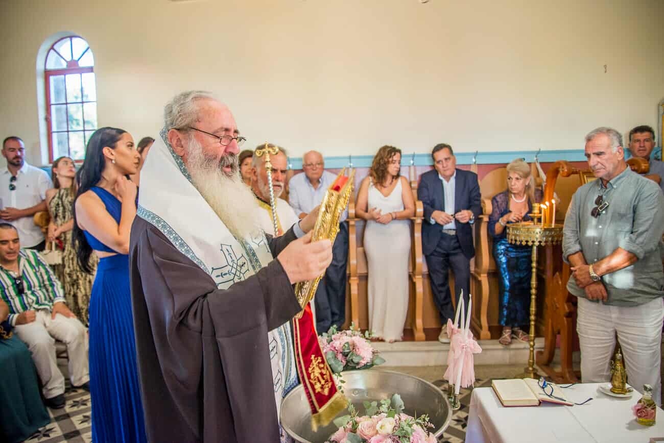 Η μικρή πήρε το όνομα Ελένη, με νονές να προέρχονται από τη Θεσσαλονίκη – τόπο καταγωγής του Δημήτρη – και το Ληξούρι. Το Μυστήριο τέλεσε ο Σεβασμιώτατος Μητροπολίτης Κεφαλληνίας κ. Δημήτριος στον Ιερό Ναό Αναλήψεως στα Σβορωνάτα, προσδίδοντας ιδιαίτερη λαμπρότητα στη σημαντική αυτή στιγμή της οικογένειας.