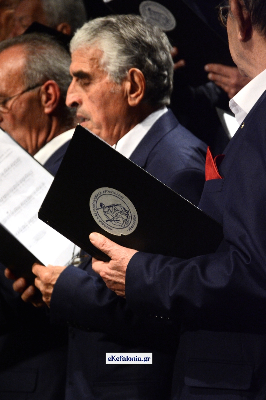 Τη σκηνή πλημμύρισαν οι φωνές και οι μελωδίες της Γυναικείας Χορωδίας υπό τη διεύθυνση της Αλεξίας Μαρτσέλου, καθώς και της Ανδρικής Χορωδίας και της Μαντολινάτας Αργοστολίου με μαέστρο τον Σπύρο Θεοτοκάτο. Οι μονωδοί Ματίνα Παπαγεωργίου και Ελευθερία Edwards πρόσθεσαν τη δική τους ξεχωριστή καλλιτεχνική σφραγίδα, χαρίζοντας στο κοινό στιγμές έντονης συγκίνησης και υψηλής αισθητικής.