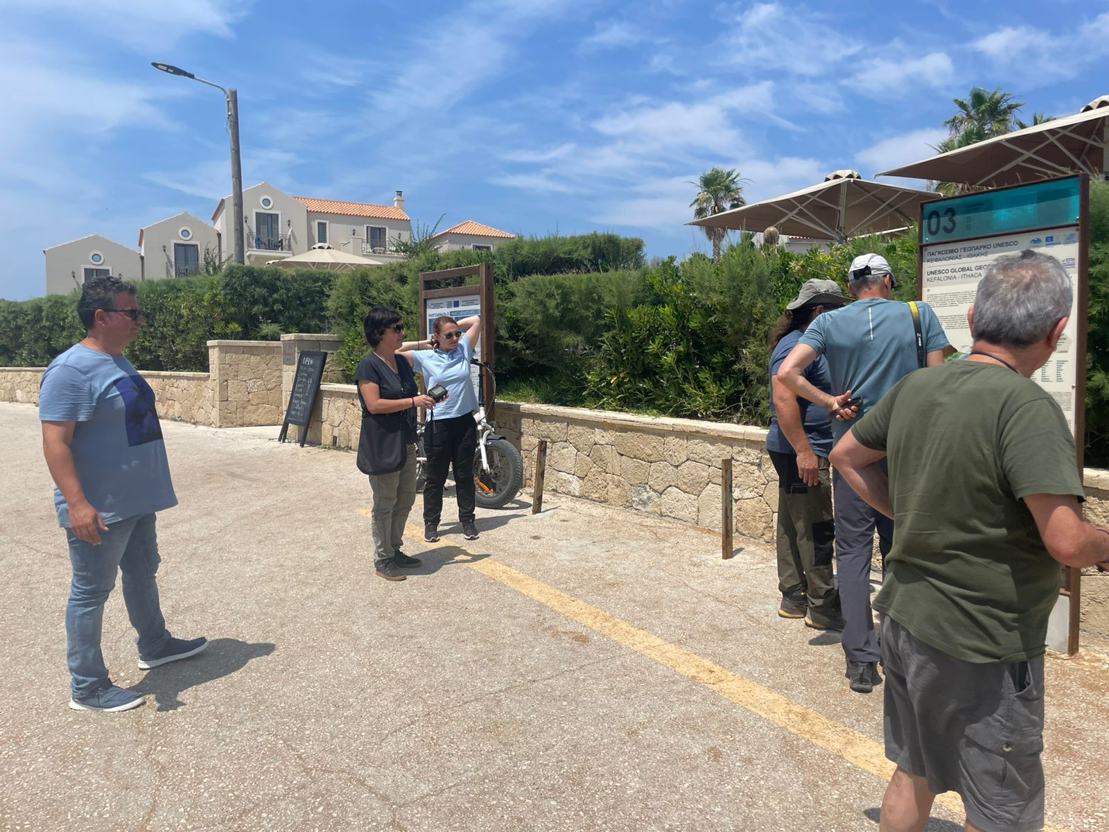 Στο πλαίσιο της επαναξιολόγησης του Παγκόσμιου Γεωπάρκου UNESCO Κεφαλονιάς-Ιθάκης που πραγματοποιείται από τις 16-20 Ιουνίου 2025 οι δύο αξιολογητές της UNESCO, η κ. Leire Barriuso Astrigarraga από την Ισπανία και ο κ. Giuseppe Ottria από την Ιταλία, μαζί με τους καθηγητές του τμήματος Γεωλογίας του Πανεπιστημίου Πατρών κ. Αβράαμ Ζεληλίδη και κ. Γιώργο Ηλιόπουλο, τους επιστημονικά υπεύθυνους του Γεωπάρκου κ. Μιχαήλ Ξανθάκη και κ. Έλένη Ζουμπούλη, και τα μέλη του Γεωπάρκου κ. Κώστα Βολτέρα και κ. Γιώργο Ισμαήλο, επισκέφθηκαν την Τρίτη 17/06/2025 σημαντικούς γεωτόπους της Παλικής όπως ο υγρότοπος Λιβαδίου, ο Γερογόμπος και η παραλία Ξι, και είχαν συναντήσεις με τοπικούς φορείς, επαγγελματίες και εκπροσώπους της τοπικής κοινωνίας στο Μουσείο των Καμιναράτων και το οινοποιείο του κ. Σκλάβου, σχετικά με την περεταίρω ανάπτυξη του Γεωπάρκου και την ανάδειξη του σημαντικού του έργου.