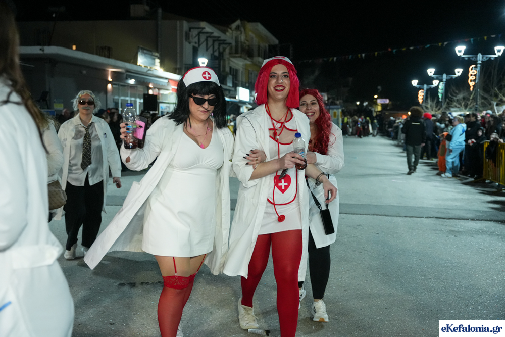 Παράλληλα, η παραλιακή του Ληξουρίου, είχε κατακλυστεί από κόσμο που παρακολούθησε τη βραδινή παρέλαση και συμμετείχε με αποκριάτικη διάθεση, αφού οι καρναβαλιστές κατάφεραν με τον δικό τους τρόπο, να τους παρασύρουν στους ρυθμούς της διασκέδασης και του κεφιού.