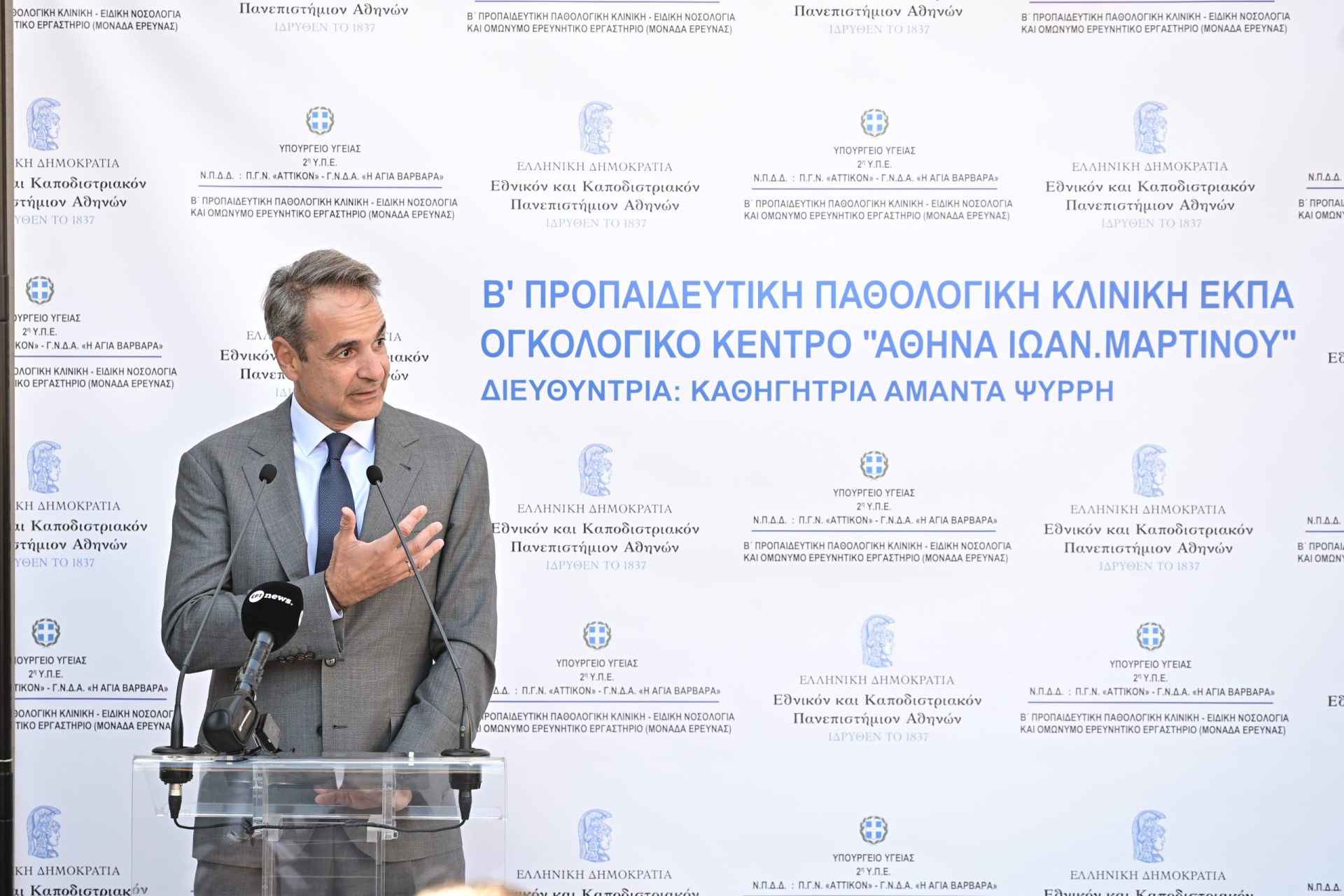 Στο Αττικό Νοσοκομείο βρέθηκε σήμερα ο πρωθυπουργός Κυριάκος Μητσοτάκης για τα εγκαίνια του Ογκολογικού κέντρου «Αθηνά Ιωαν. Μαρτίνου» στο πλαίσιο της αναβάθμισης του ΕΣΥ.