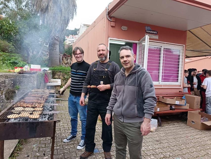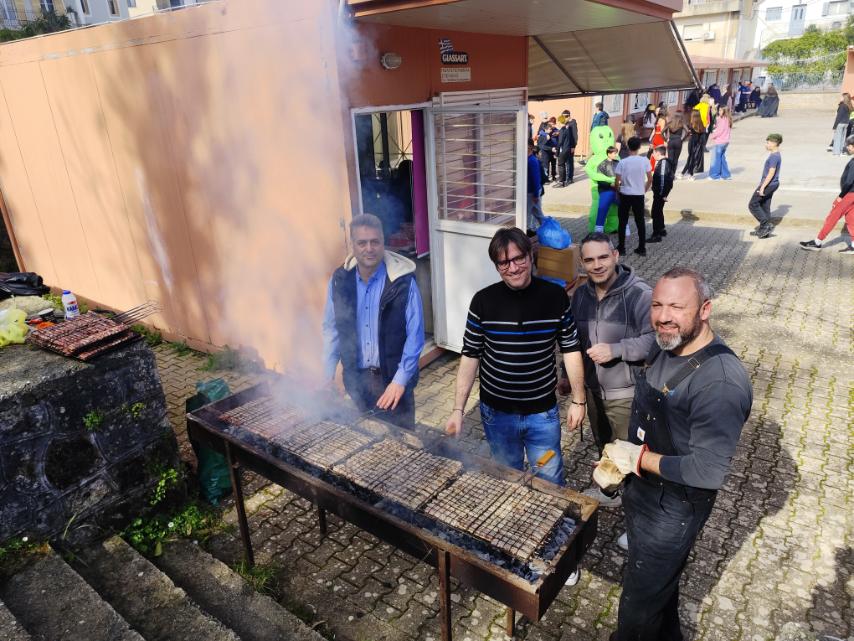 Προσφέραμε σε μαθητές και εκπαιδευτικούς 550 φρεσκοψημένα σουβλάκια, τα οποία αγοράστηκαν με δαπάνη του Συλλόγου μας και τα οποία ψήσαμε με μεράκι οι ίδιοι, μαζί με αναψυκτικά και γλυκίσματα.