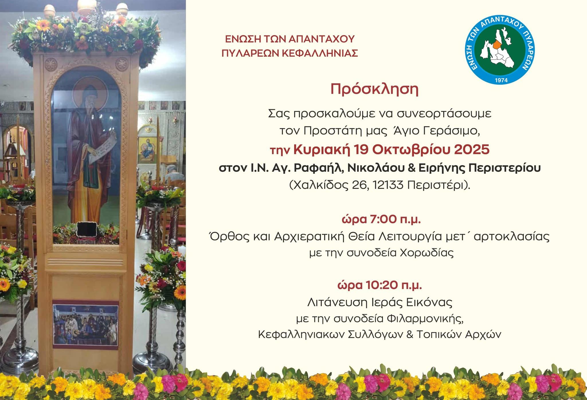 Οι απανταχού Πυλαρινοί γιορτάζουν τον Άγιο Γεράσιμο