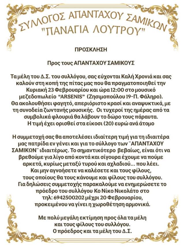 Οι απανταχού Σαμικοί της Αθήνας κόβουν την Πίτα τους