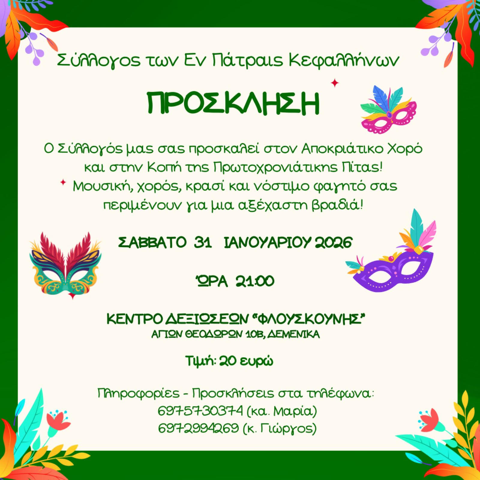 Απόψε η Κοπή Βασιλόπιτας από την Ένωση Κεφαλλήνων Κηφισίας & Βόρειων Προαστίων