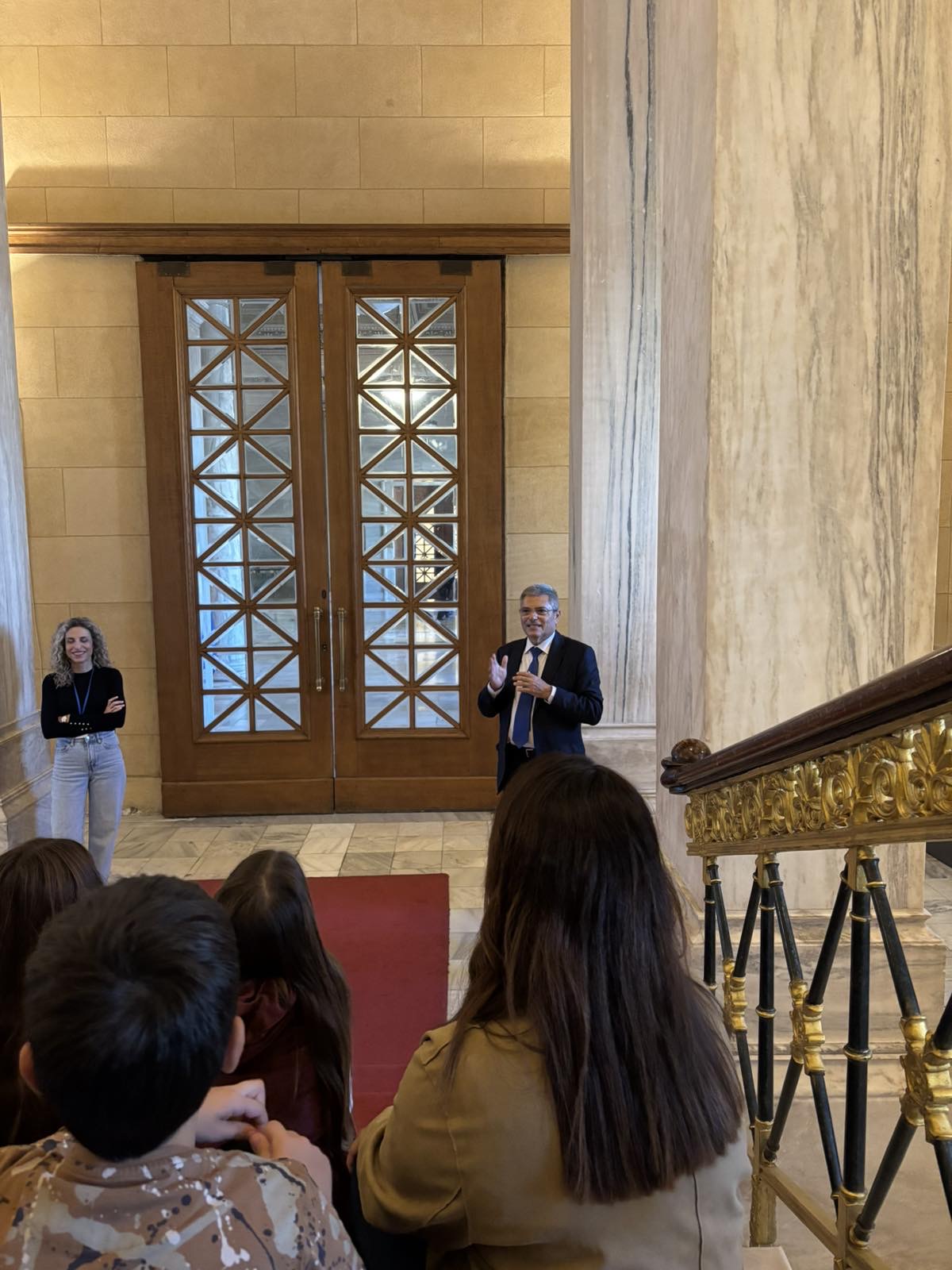 Κατά τη διάρκεια της ξενάγησης, είχα την ευκαιρία να συνομιλήσω μαζί τους και να τους ενημερώσω σχετικά με τη λειτουργία της Βουλής και τον ρόλο της στην εκπροσώπηση των πολιτών.