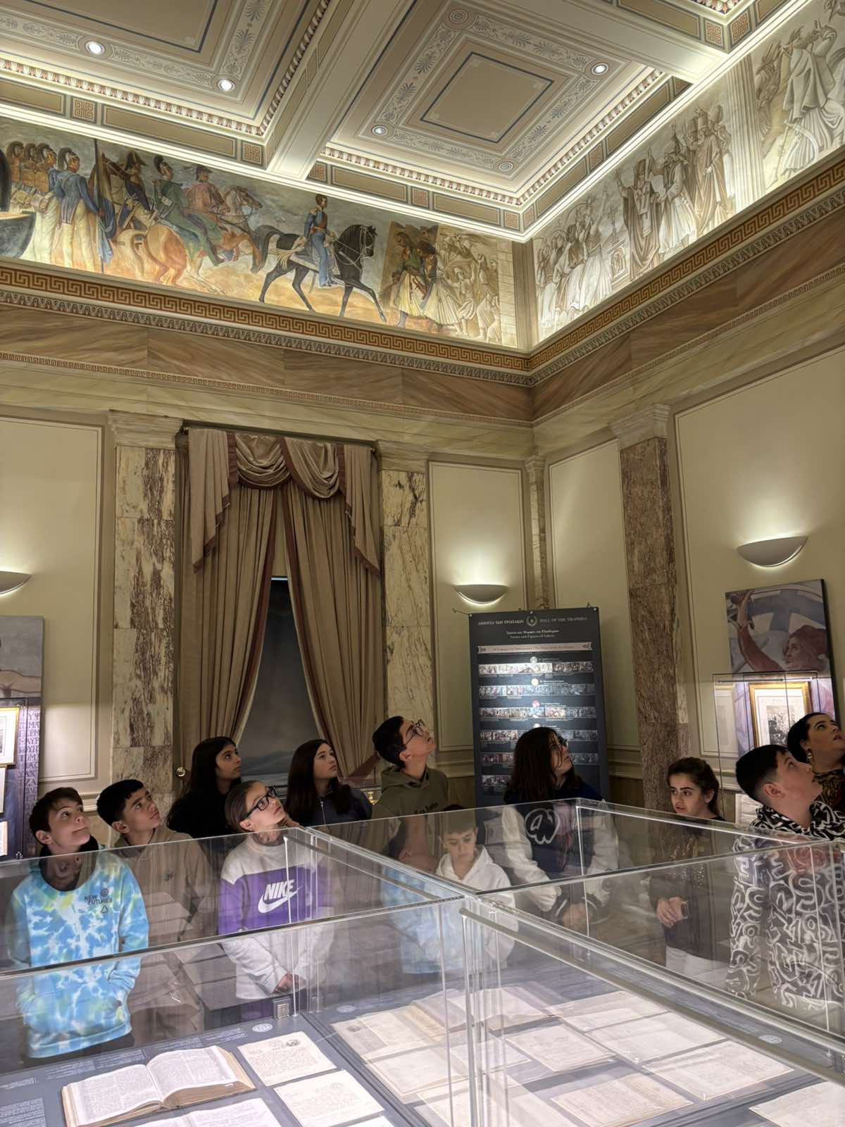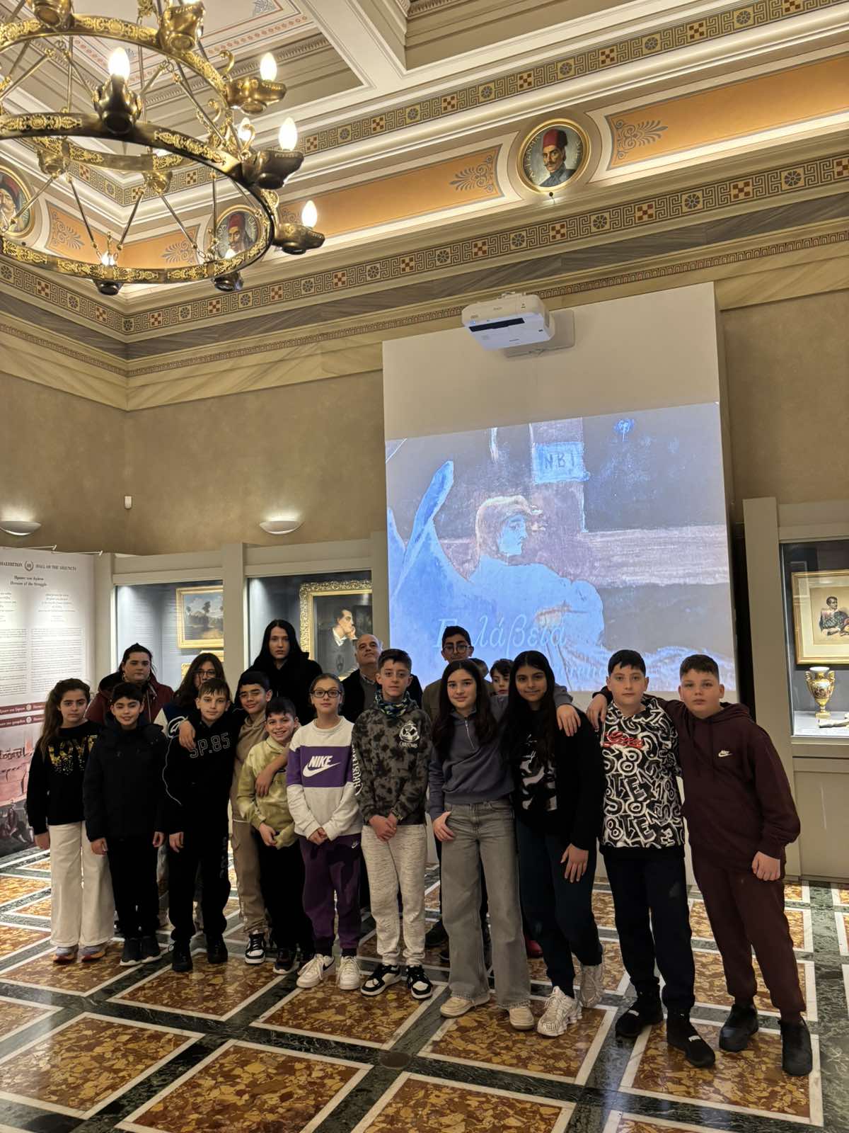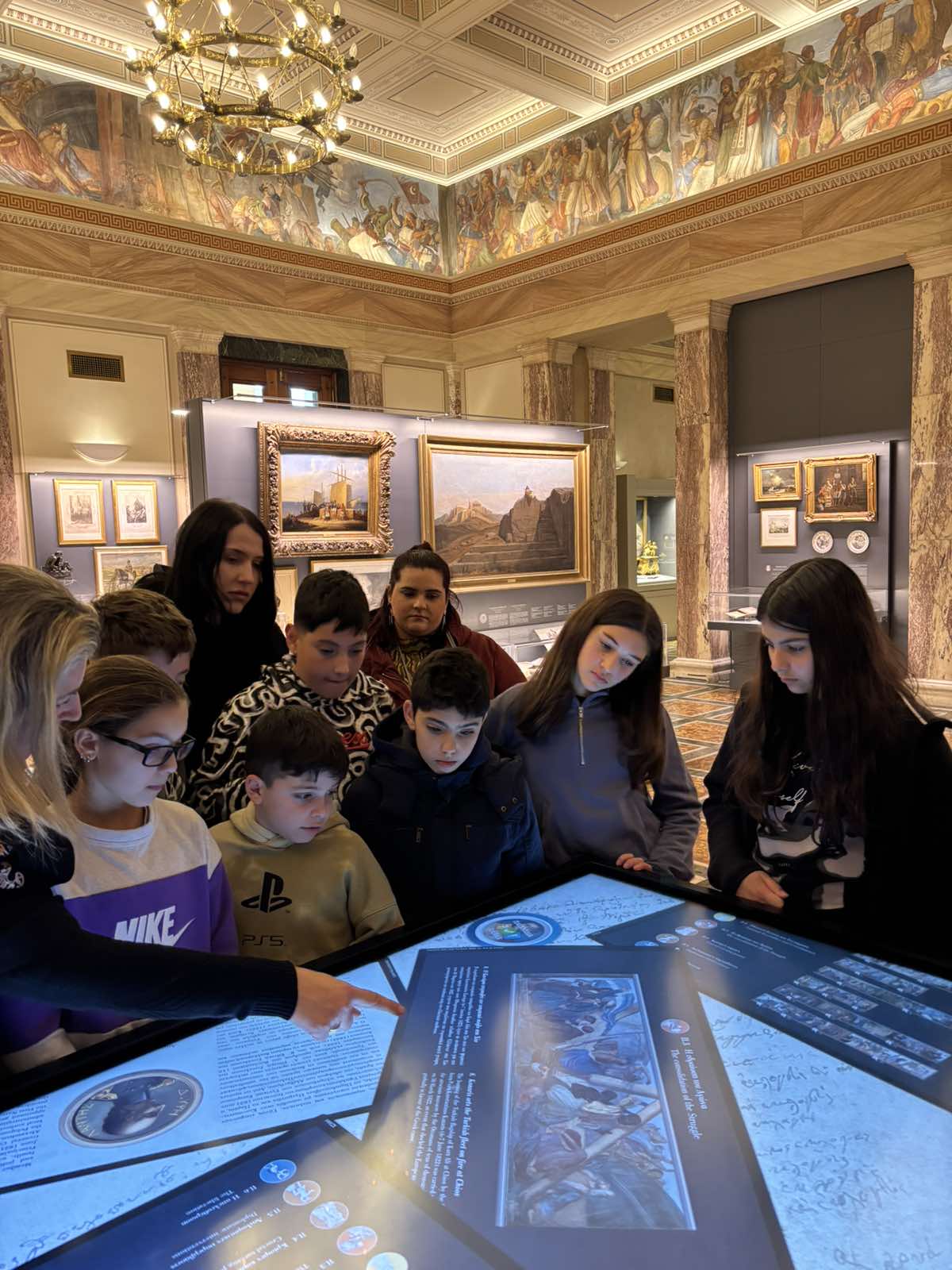 Στο πλαίσιο του εκπαιδευτικού προγράμματος, οι μαθητές ξεναγήθηκαν στην έκθεση που φιλοξενείται στην Αίθουσα «Ελευθέριος Βενιζέλος», η οποία, μέσα από αρχειακό υλικό και εικαστικά τεκμήρια, αφηγείται την πορεία του ελληνικού λαού προς την Ελευθερία.