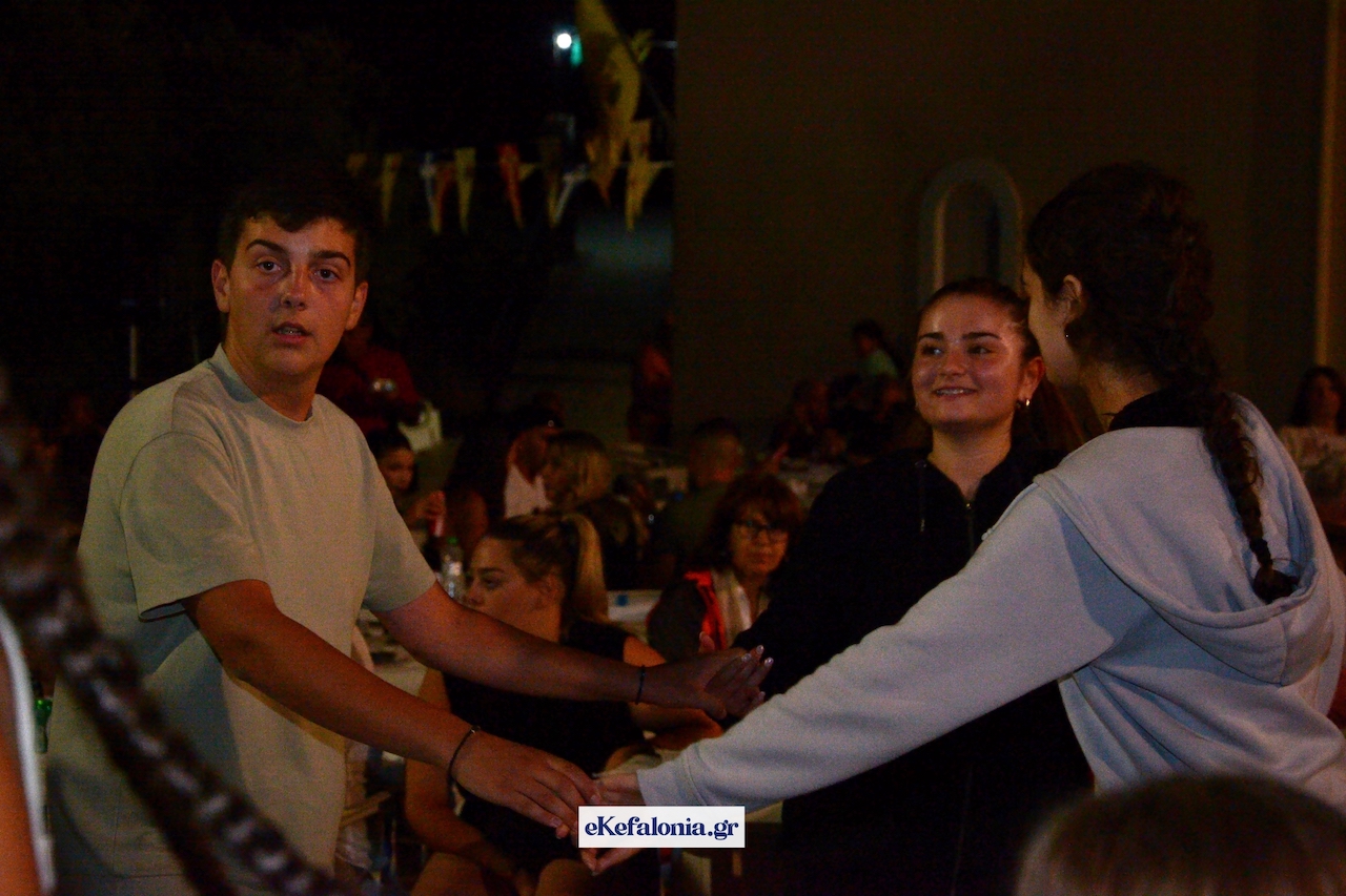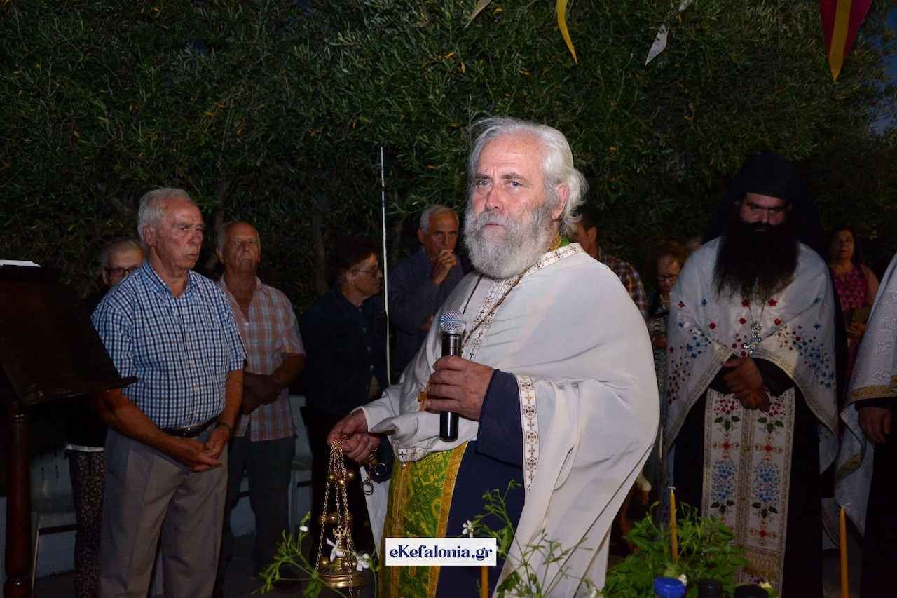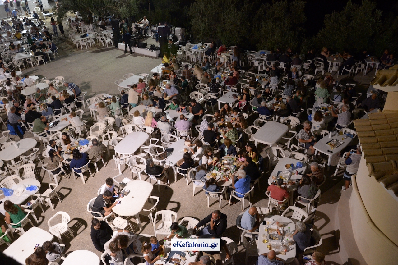 Μετά τον πανηγυρικό Εσπερινό που τέλεσε ο π. Γεράσιμος Χαραλαμπάτος και πλήθος ιερέων από τα γύρω χωριά, προσφέρθηκε –όπως προστάζει το παλιό, προσεισμικό έθιμο– το παραδοσιακό κέρασμα με άρτο, τυρί και ντομάτα, που κάθε χρόνο φέρνει μνήμες από τις παλιές, αυθεντικές γιορτές των Φραγκάτων.