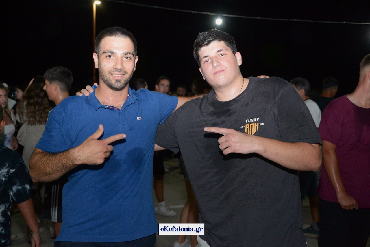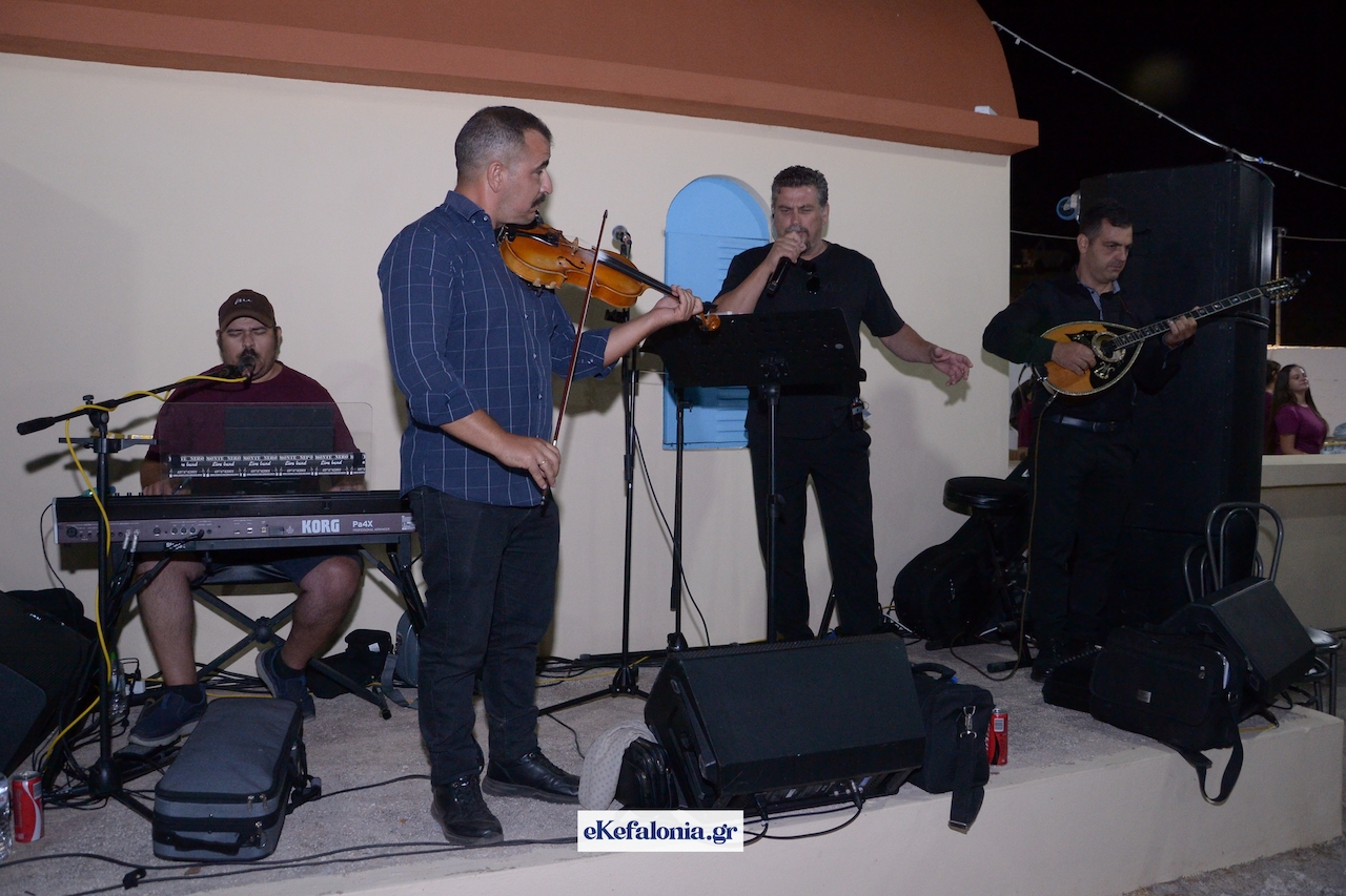 Αμέσως μετά, στις 21:00, ξεκίνησε το μεγάλο γλέντι. Ο χώρος γύρω από την εκκλησία μεταμορφώθηκε σε γιορτινό προαύλιο, με πλούσιο μπουφέ, κεράσματα και – φυσικά – ζωντανή μουσική. Την διασκέδαση ανέλαβαν οι ταλαντούχοι μουσικοί Μάκης Παπάς και Ζήσης Σκλαβουνάκης, παρασύροντας μικρούς και μεγάλους σε χορούς μέχρι αργά τη νύχτα. Παραδοσιακοί σκοποί, νησιώτικα τραγούδια και αγαπημένες μελωδίες έντυσαν ιδανικά την καλοκαιρινή αυτή βραδιά κάτω από τα αστέρια, στο μοναδικό φυσικό τοπίο του Αίνου.