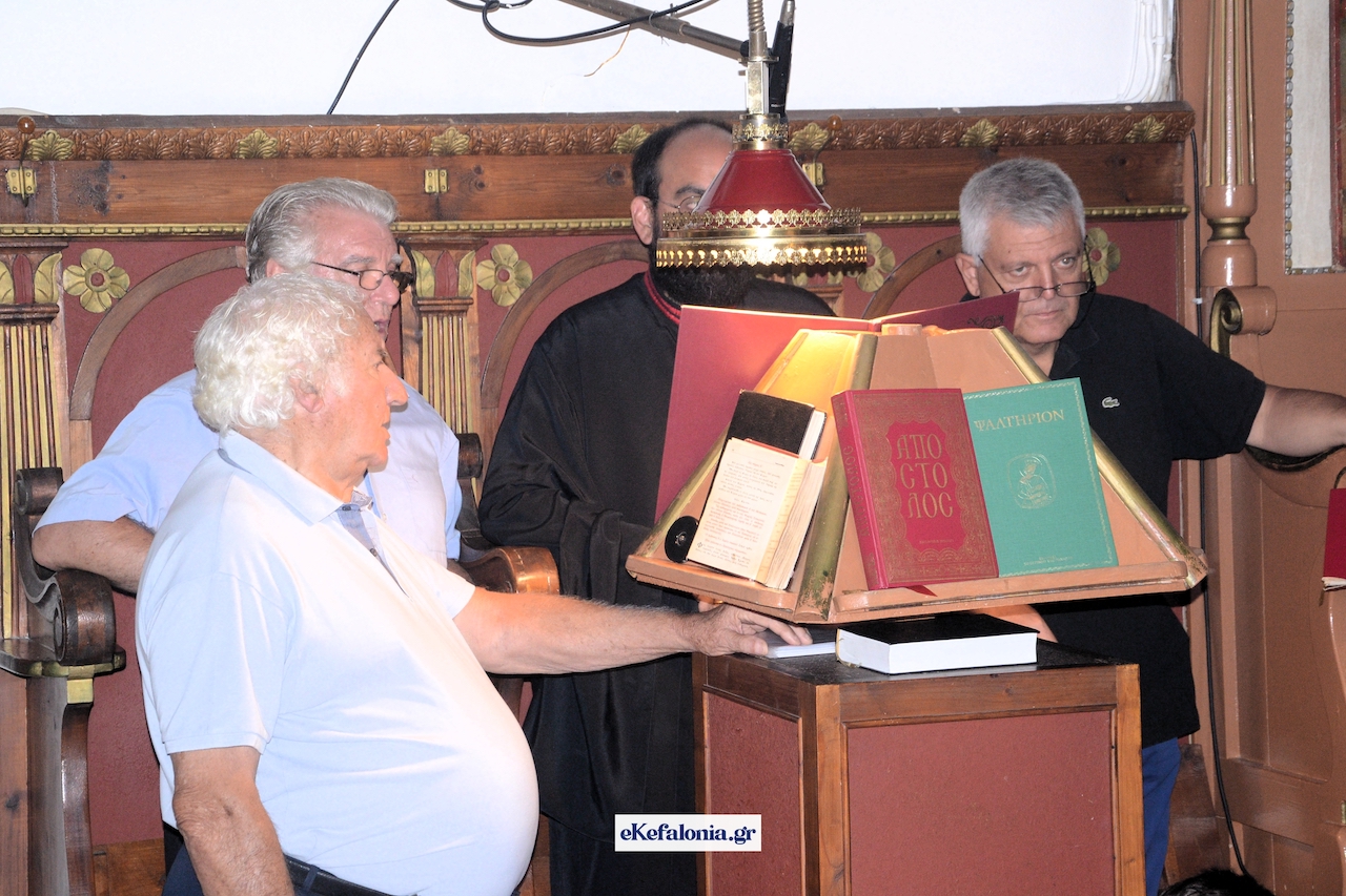 Της εόρτιας Ακολουθίας του Εσπερινού τέλεσαν πλήθος ιερέων της περιοχής, με τον πιστό λαό να συμμετέχει ευλαβικά. Ανάμεσά τους ο Δήμαρχος Αργοστολίου, Θεόφιλος Μιχαλάτος, ο Πρόεδρος του Δημοτικού Συμβουλίου, Νικόλας Βαλλιανάτος, ο Αντιδήμαρχος Διονύσης Κωνσταντάτος, κ.α.