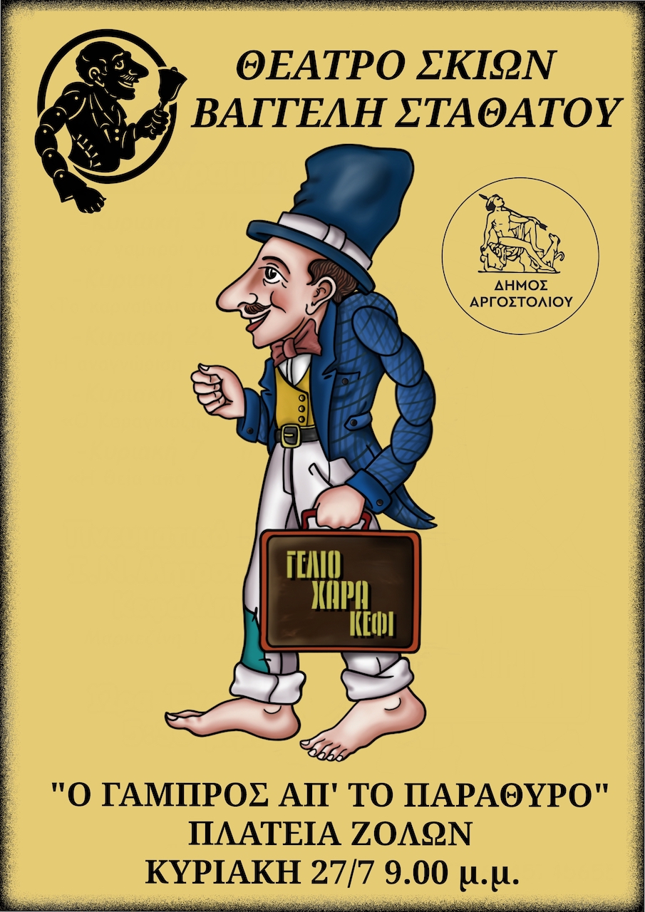 Σας περιμένουμε όλους για να απολαύσουμε την ξεκαρδιστική κωμωδία «Ο ΓΑΜΠΡΟΣ ΑΠ΄ ΤΟ ΠΑΡΑΘΥΡΟ!» από το θέατρο σκιών του Βαγγέλη Σταθάτου!