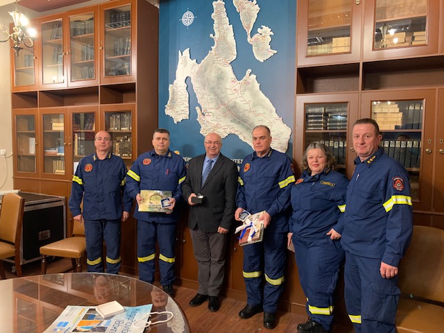 Τον Αντιστράτηγο κ Δημήτριο Μπριόλα, Γενικό Επιθεωρητή Νότιου Ελλάδος, τον Υποστράτηγο κ Κωνσταντίνο Γόντικα, Συντονιστή Επιχειρήσεων, Πελοποννήσου, Δυτικής Ελλάδος και των Νήσων Κεφαλληνίας, Ιθάκης και Ζακύνθου, και το επιτελείο τους. Στην συνάντηση παραβρέθηκαν ο Διοικητής και ο Υποδιοικητής της Πυροσβεστικής Υπηρεσίας Αργοστολίου κκ Αναστάσιος Ποταμιάνος και Χριστοπαναγής Κουγιανός.