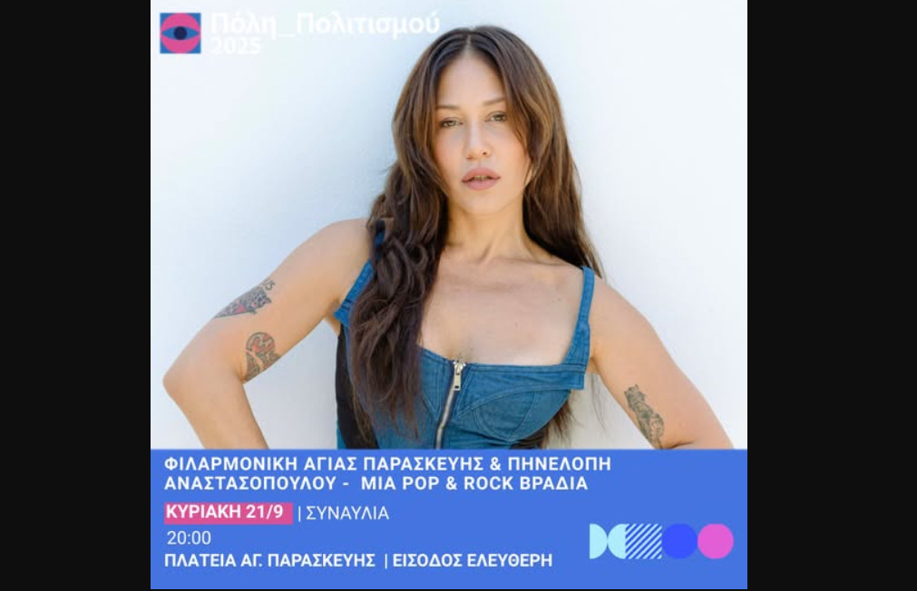 Μια μοναδική μουσική βραδιά υπόσχεται η Δημοτική Φιλαρμονική Αγίας Παρασκευής, που ενώνει τις δυνάμεις της με την Πηνελόπη Αναστασοπούλου για μια συναυλία γεμάτη ενέργεια, ρυθμό και αγαπημένες μελωδίες.
